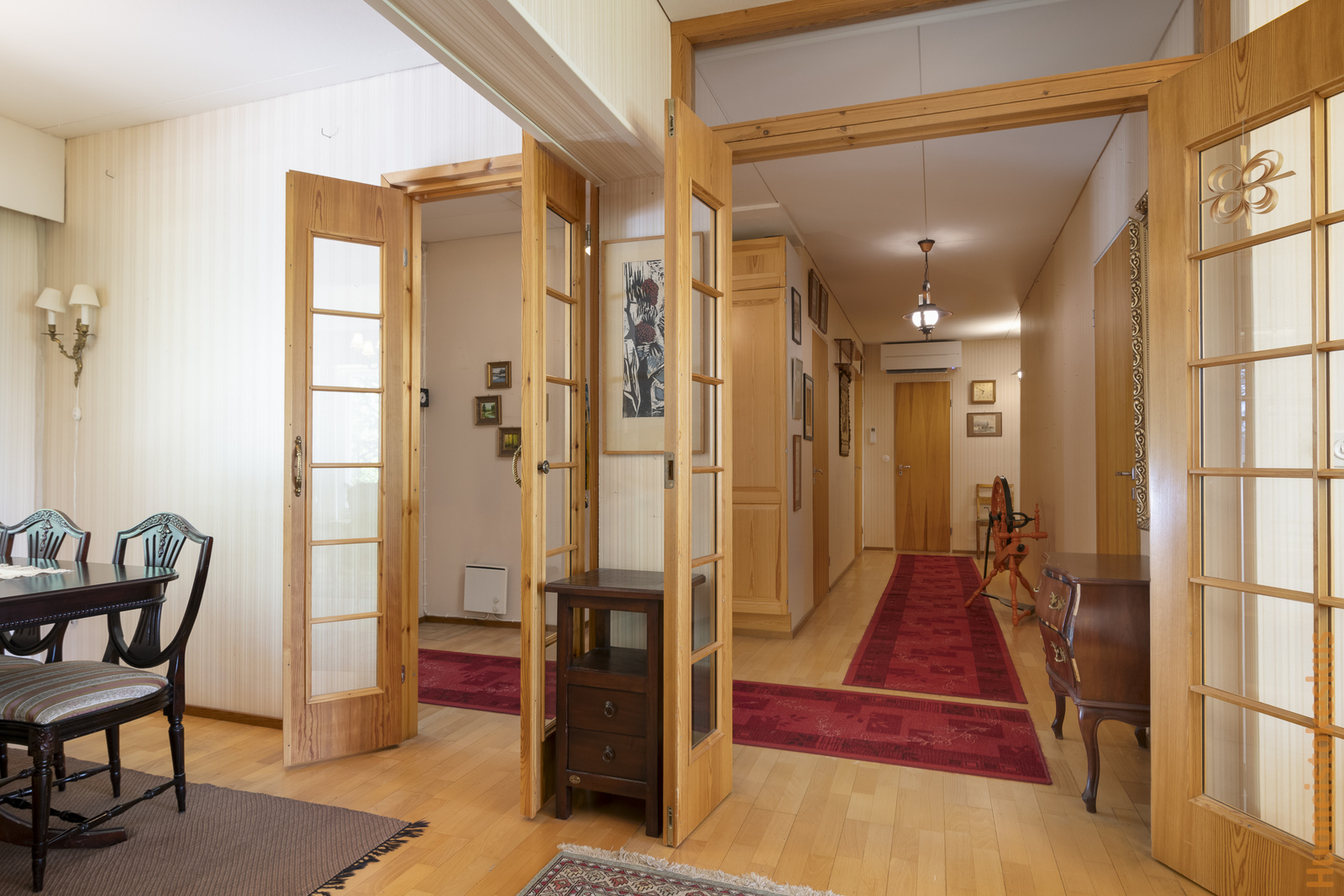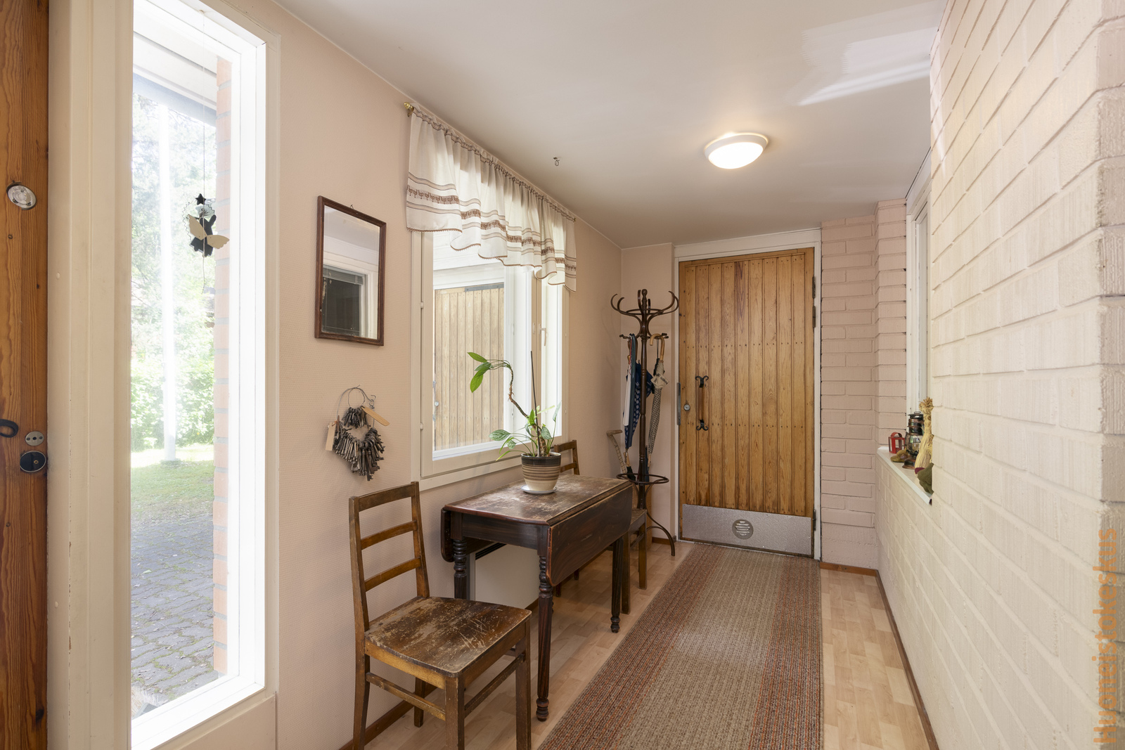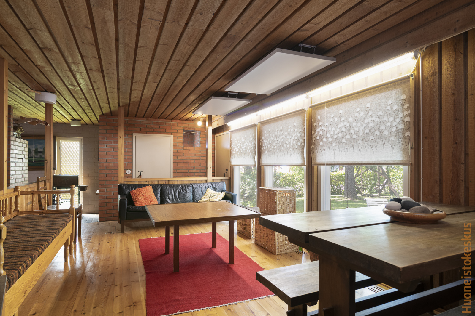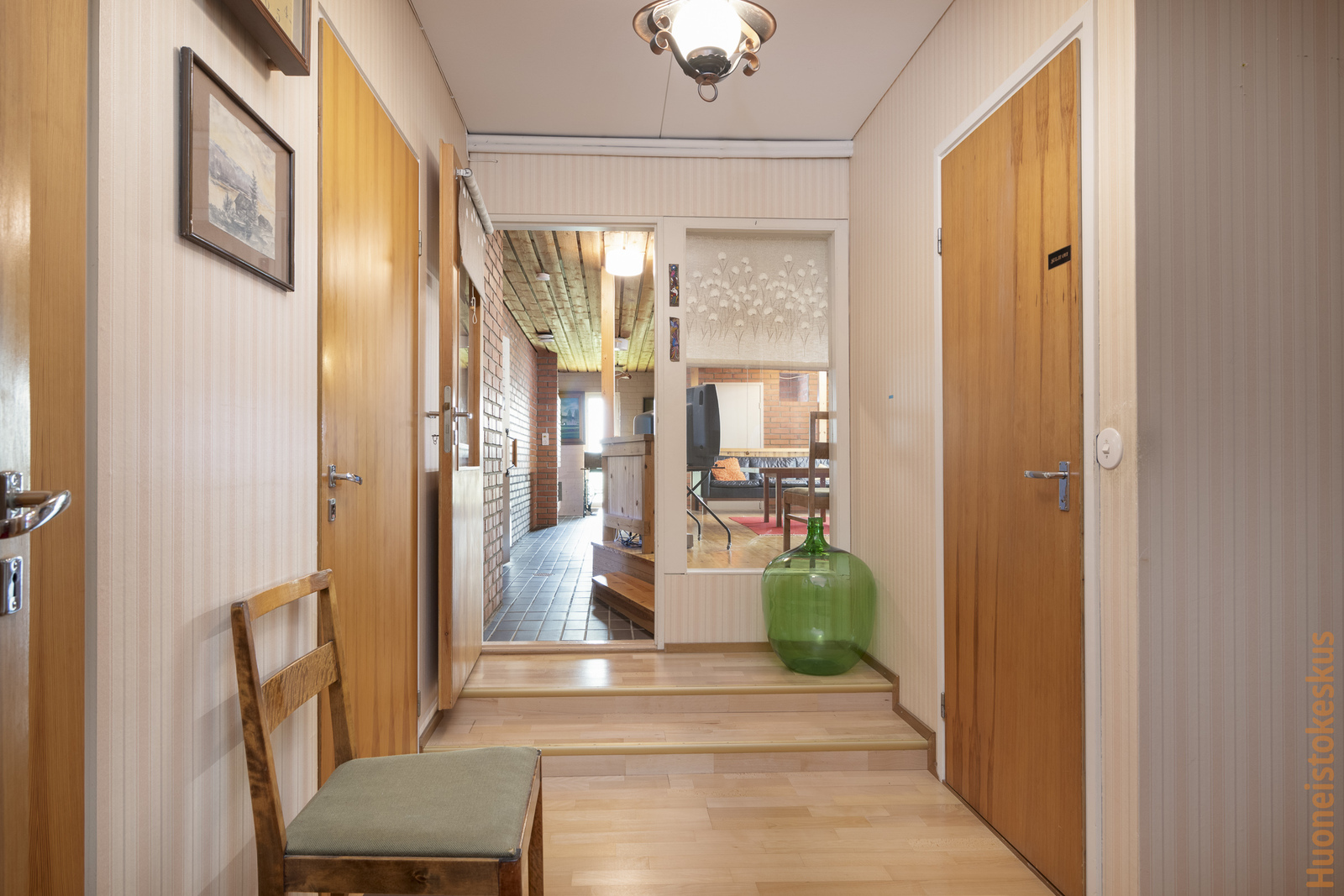 | Olohuoneen kuvaus | Seinät (tapetti), lattiat (parketti), Olohuoneen yhteydessä takkanurkkaus (avotakka). |