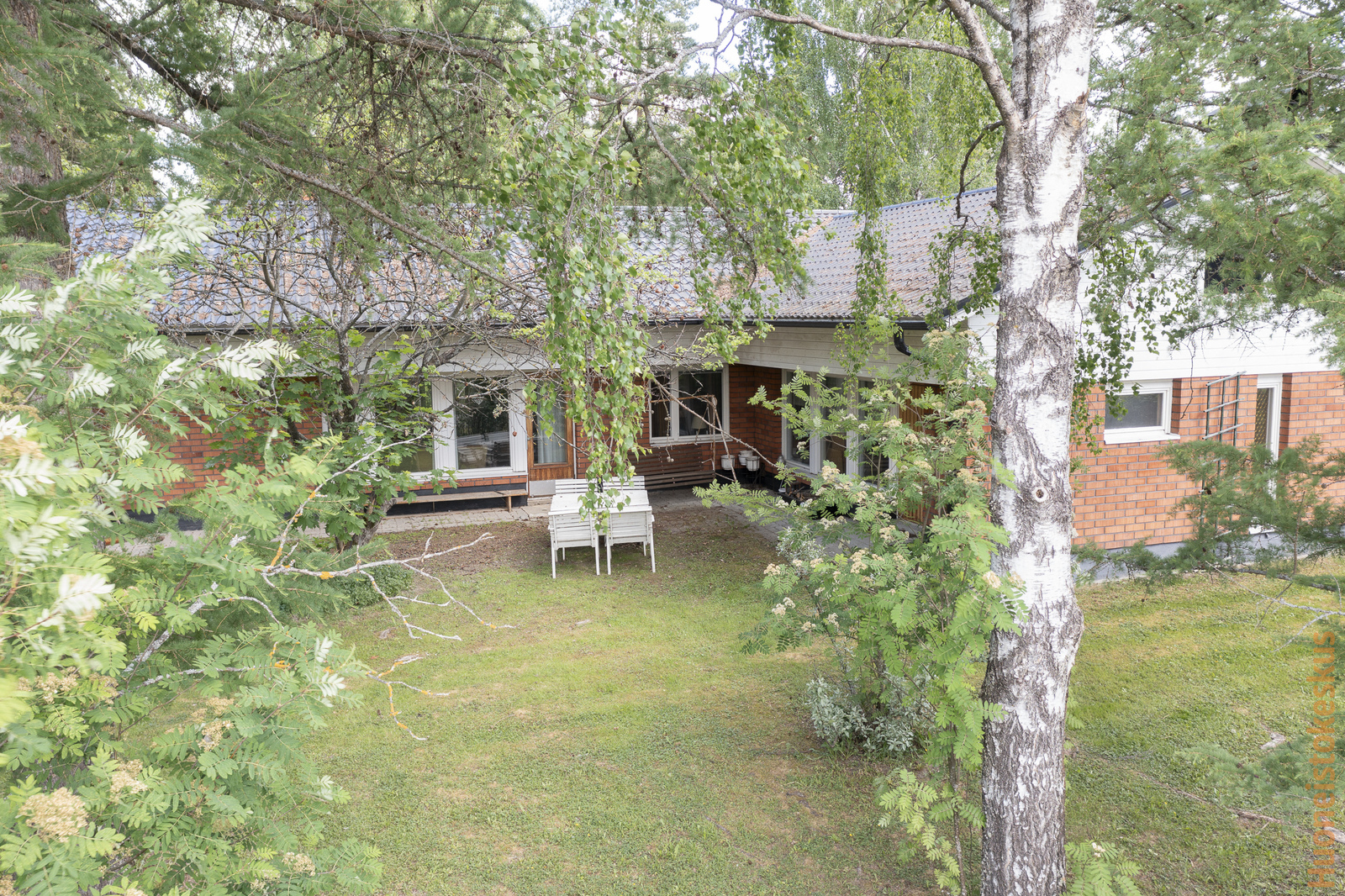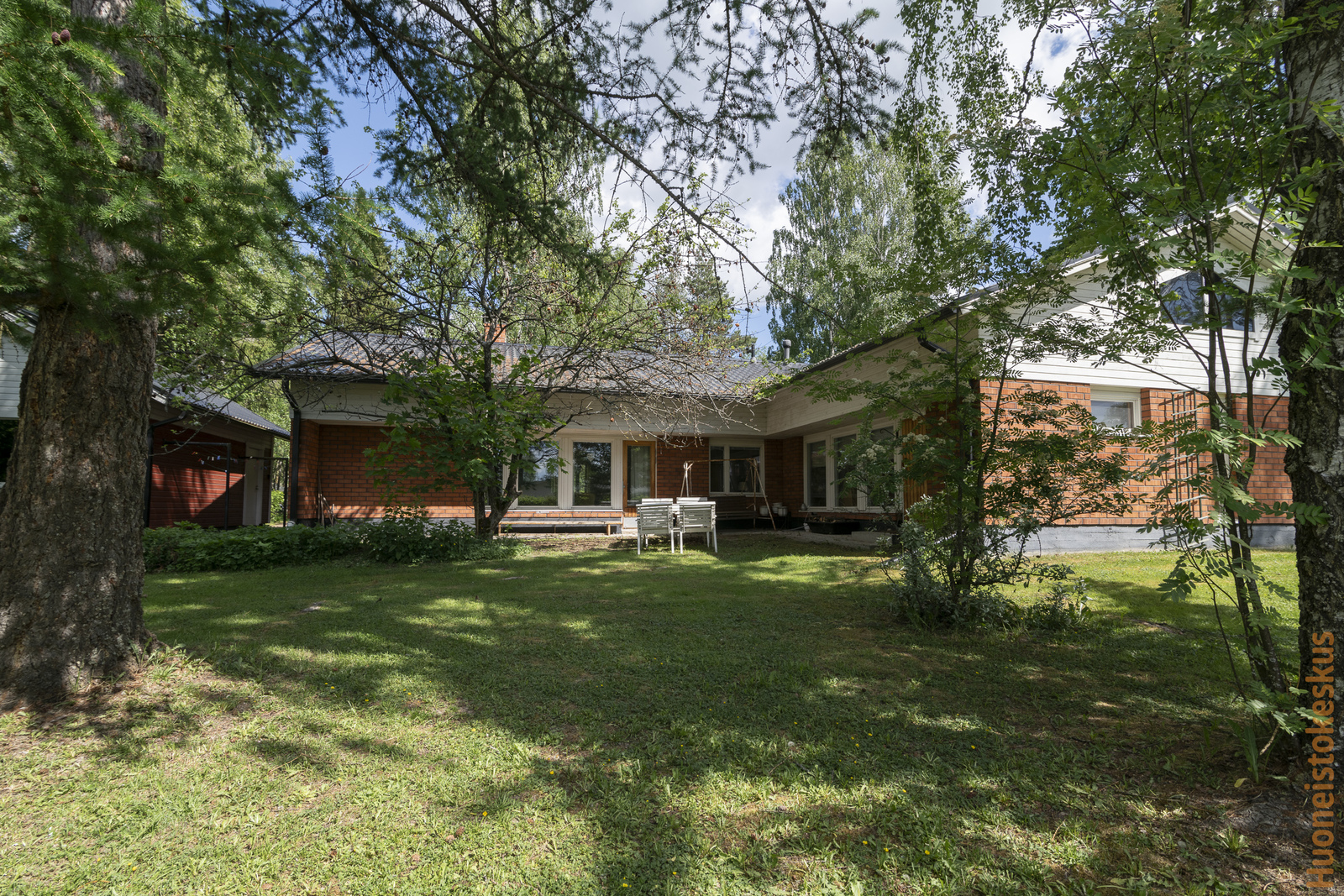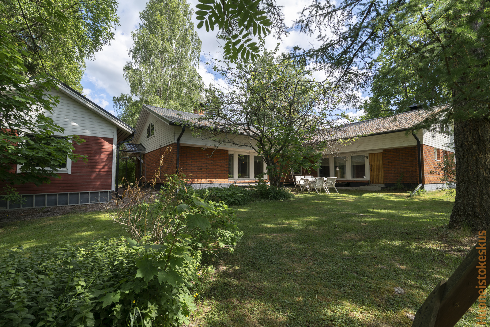 Vehreä tontti 1540 m2 on pensasaidan ja puiden suojassa, omassa rauhassa. Tontilla on lisäksi v.2007 rakennettu erillinen autotalli ja pieni puutarhavaja.
