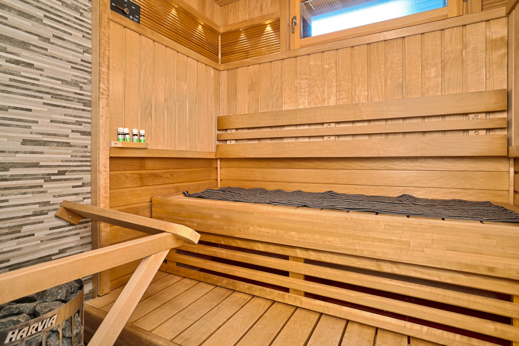 | Saunan kuvaus | Seinät (puu ja kivi), lattiat (laatta), Sähkökiuas, Ikkunallinen sauna |