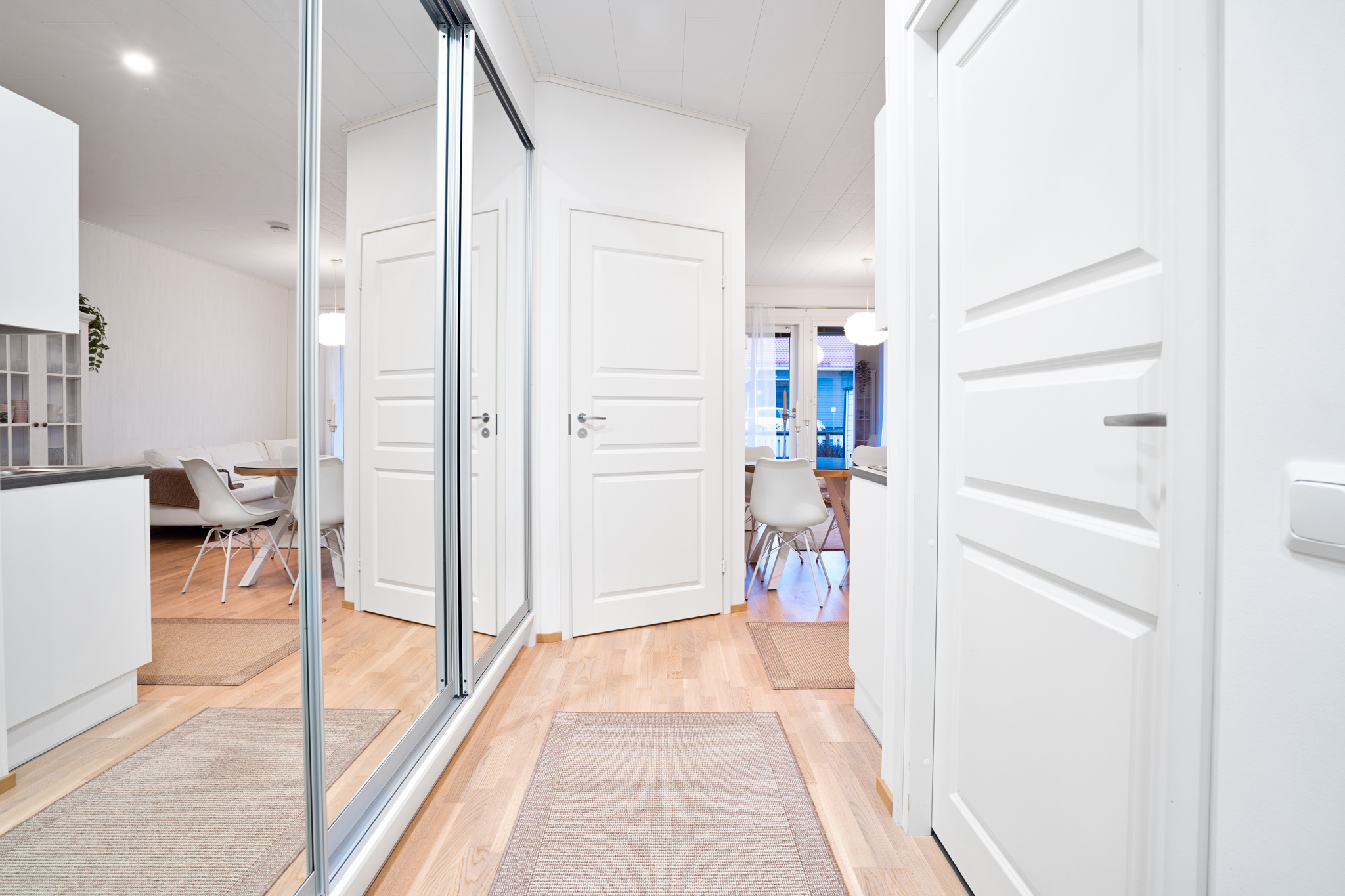 | Tilojen kuvaus | Eteisessä liukuovelliset peilikaapistot sekä tuulikaapin puolella kiintokaapisto |