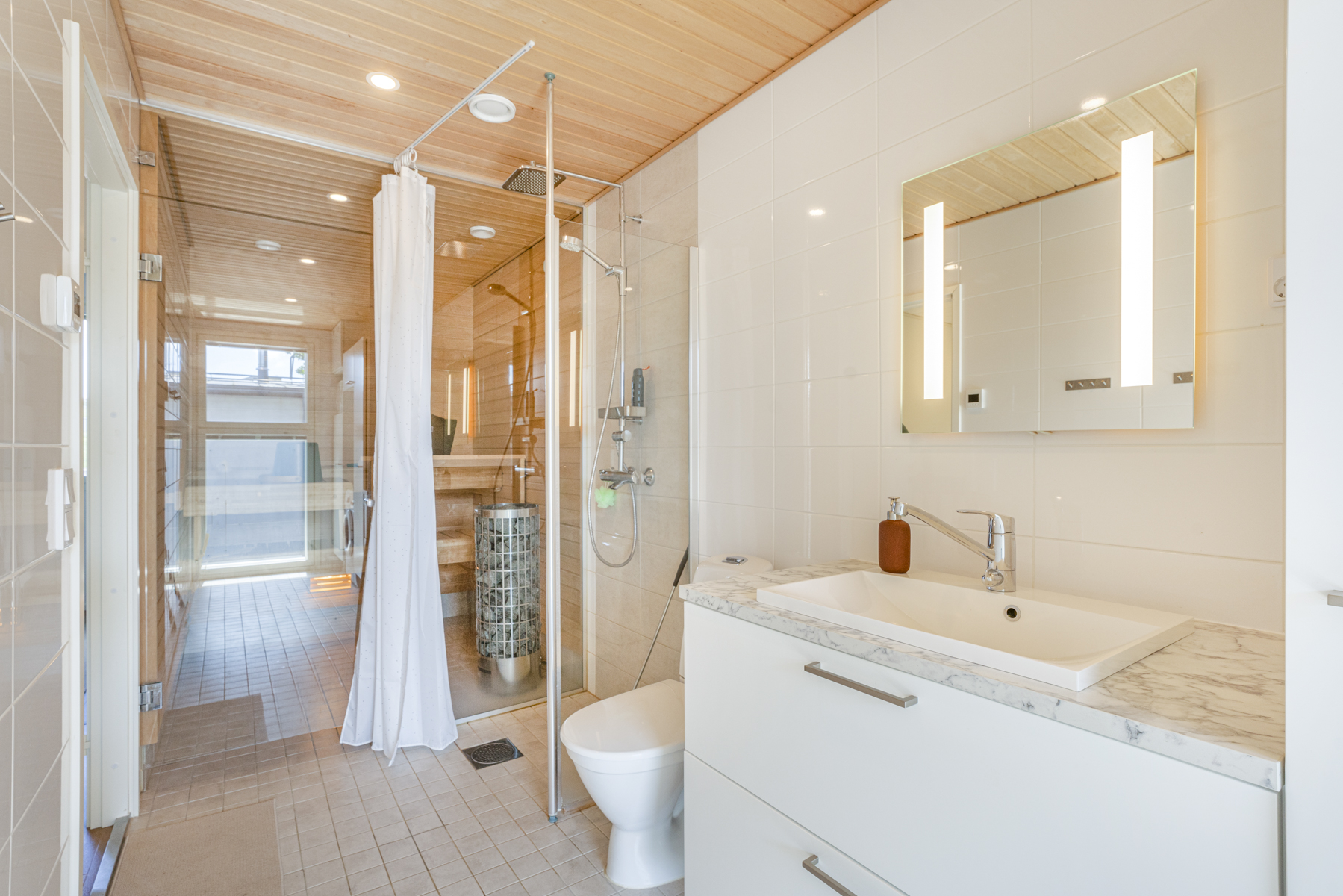 Tämä upea, moderni koti on valmistunut vuonna 2021 ja hurmaa ensiaskeleista lähtien. Tyylikäs värimaailma, laadukkaat materiaalivalinnat ja viimeistellyt pinnat luovat harmonisen ja kauniin kokonaisuuden, jossa jokainen yksityiskohta on mietitty huolella. Kodin kolme makuuhuonetta tarjoavat sopivasti tilaa, ja päämakuuhuoneen yhteydessä on vaatehuone. Kaksi wc:tä, oma sauna sekä käytännöllinen pyykkihuoltotila tekevät asumisesta vaivatonta.
