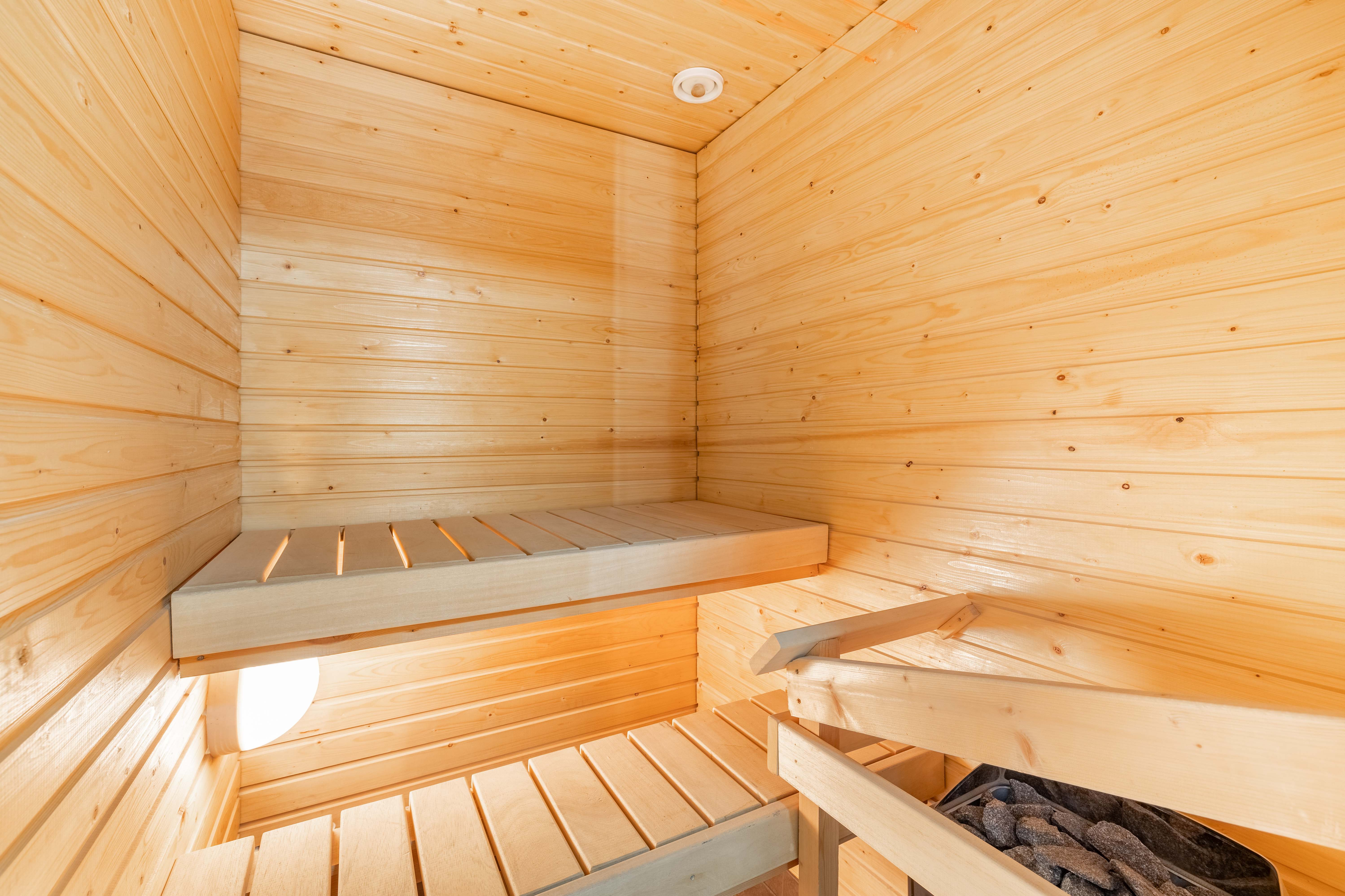 | Saunan kuvaus | Seinät (puu), lattiat (laatta), Sähkökiuas |
