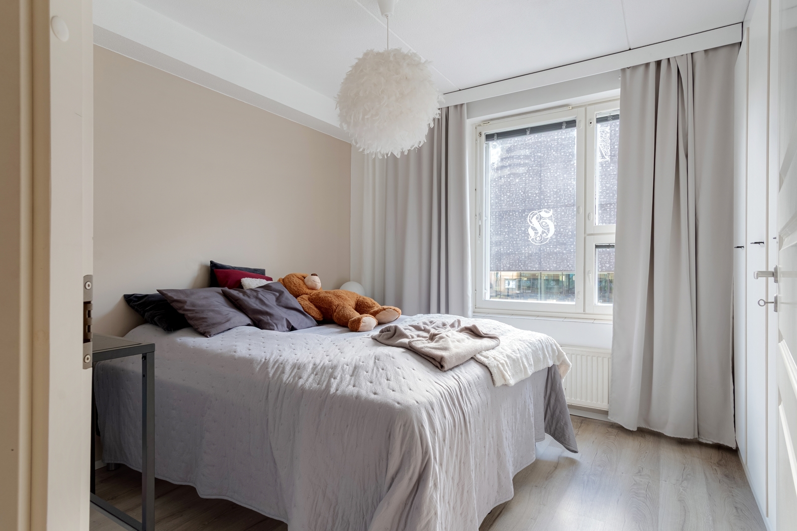 | Makuuhuoneen kuvaus | Seinät (maali), lattiat (laminaatti) |