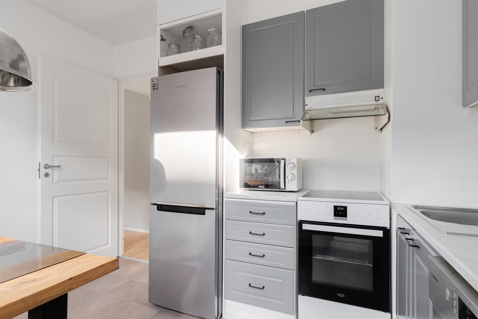 | Keittiön kuvaus | Liesi (Keraaminen liesi), työtasot (laminaatti), seinät (maali), lattiat (muovimatto), liesituuletin (liesikupu), jääkaappipakastin, astianpesukone ja kiinteät valaisimet |