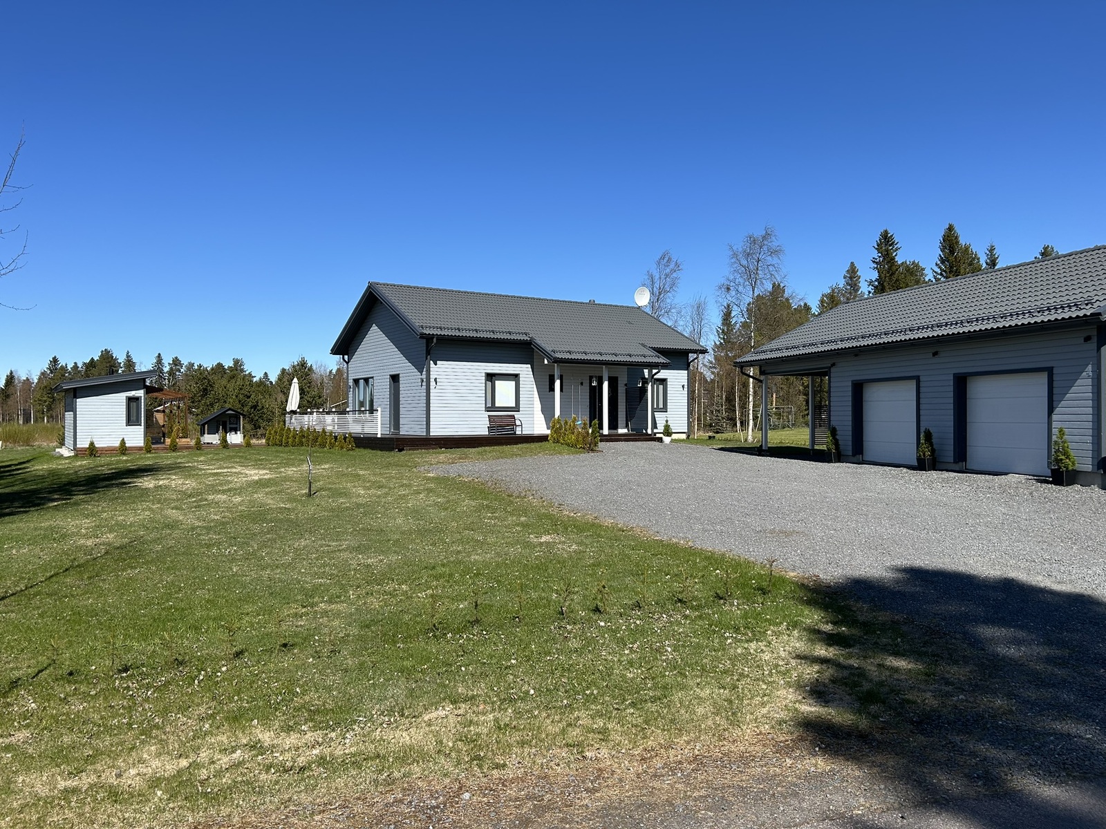 | Muut rakennukset | Autotalli ja saunarakennus. Eristetty autotalli 51m² kahdella nosto-ovella. Kokonaisala autokatoksen kanssa 84m². Saunarakennuksen kerrosala 23m². |