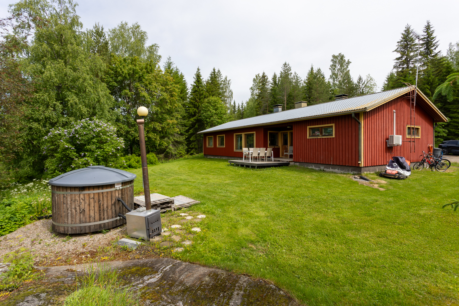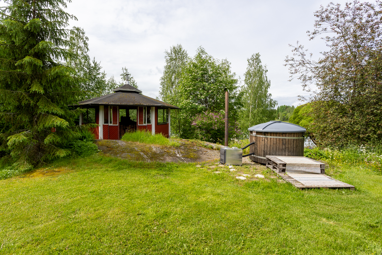 Piha alueella on mukavasti nurmea, mustaherukkaa ja erilaisia istutuksia. Erillisessä grillimajassa valmistuu ruuat vaikkapa kesävieraille. Paljussa kylpemisen lomassa pulahdat omalta laiturilta uimaan Juojärveen.