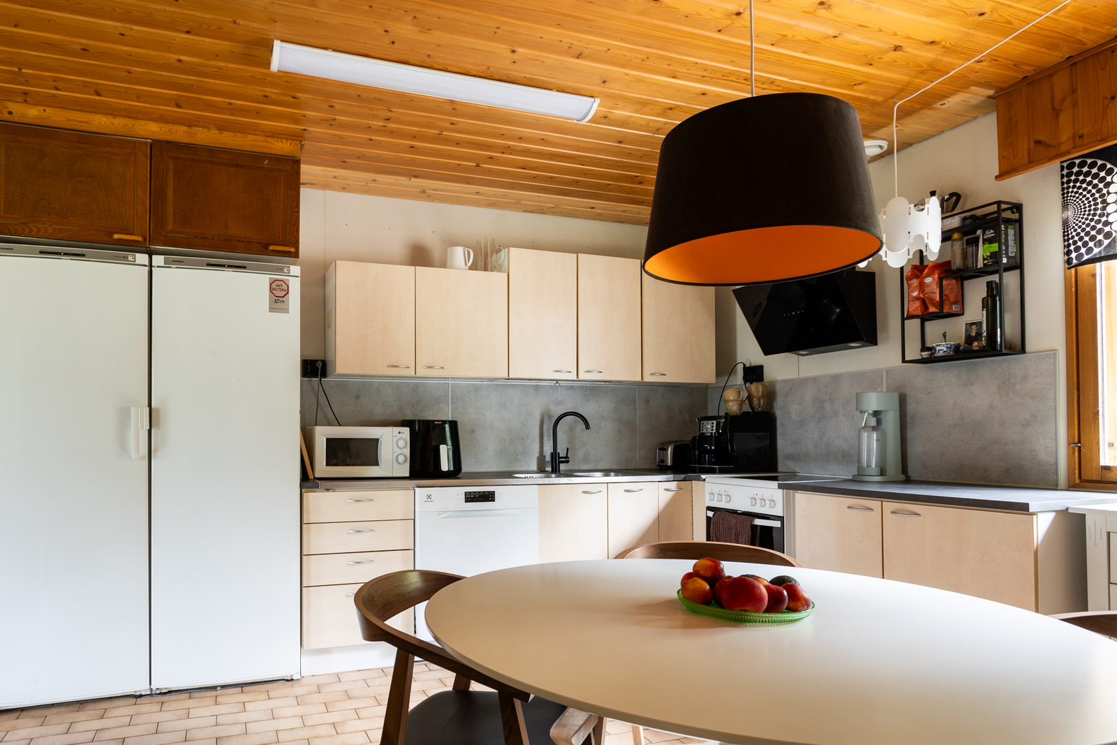 | Keittiön kuvaus | Liesi (Keraaminen liesi), työtasot (laminaatti), lattiat (lauta), astianpesukone, jääkaappipakastin ja kiinteät valaisimet |