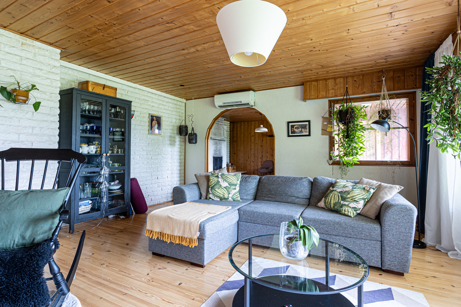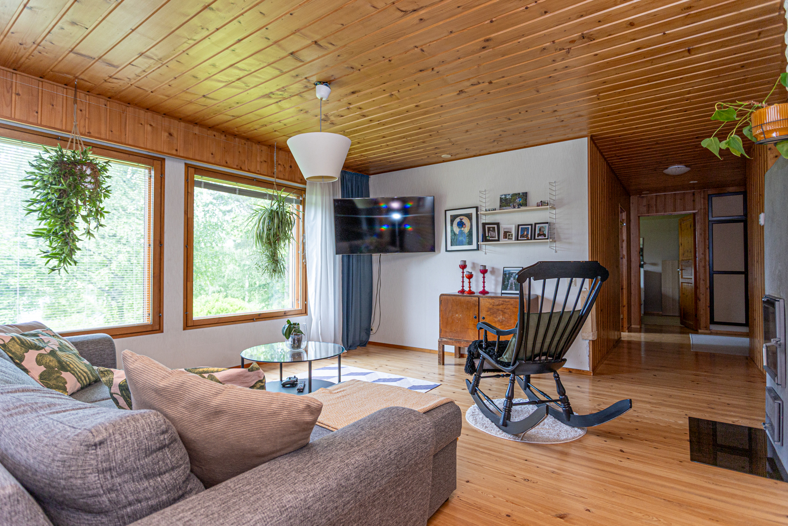 Talossa on kolme mukavankokoista makuuhuonetta, takkahuone, sekä tilava olohuone.
