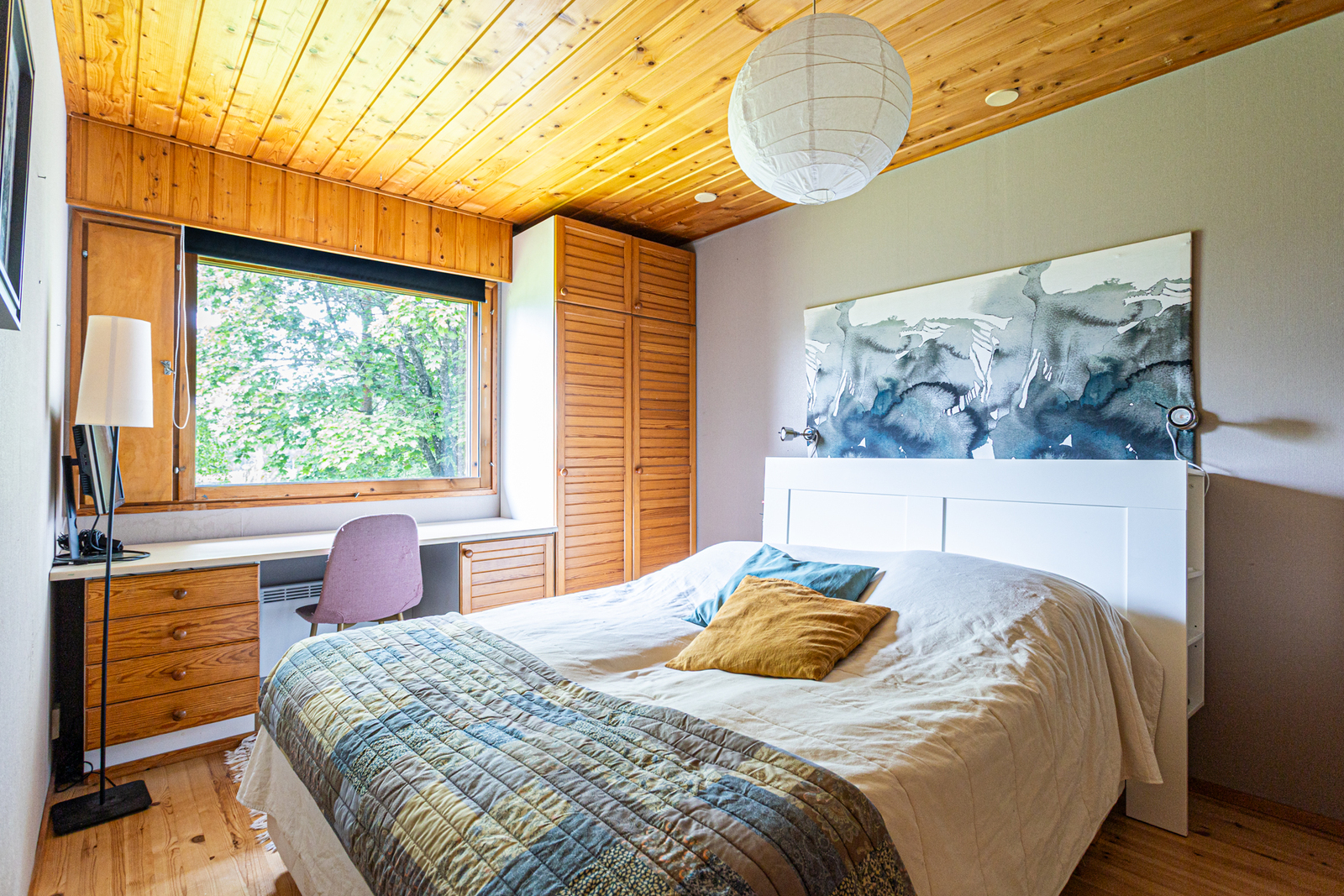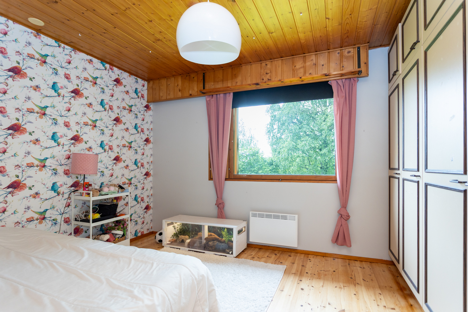 | Makuuhuoneen kuvaus | Lukumäärä: 3, lattiat (lauta), Kahdessa makuuhuoneessa seinissä tapettia, sekä maalia ja yhdessä maalattu, katot paneloitu. |