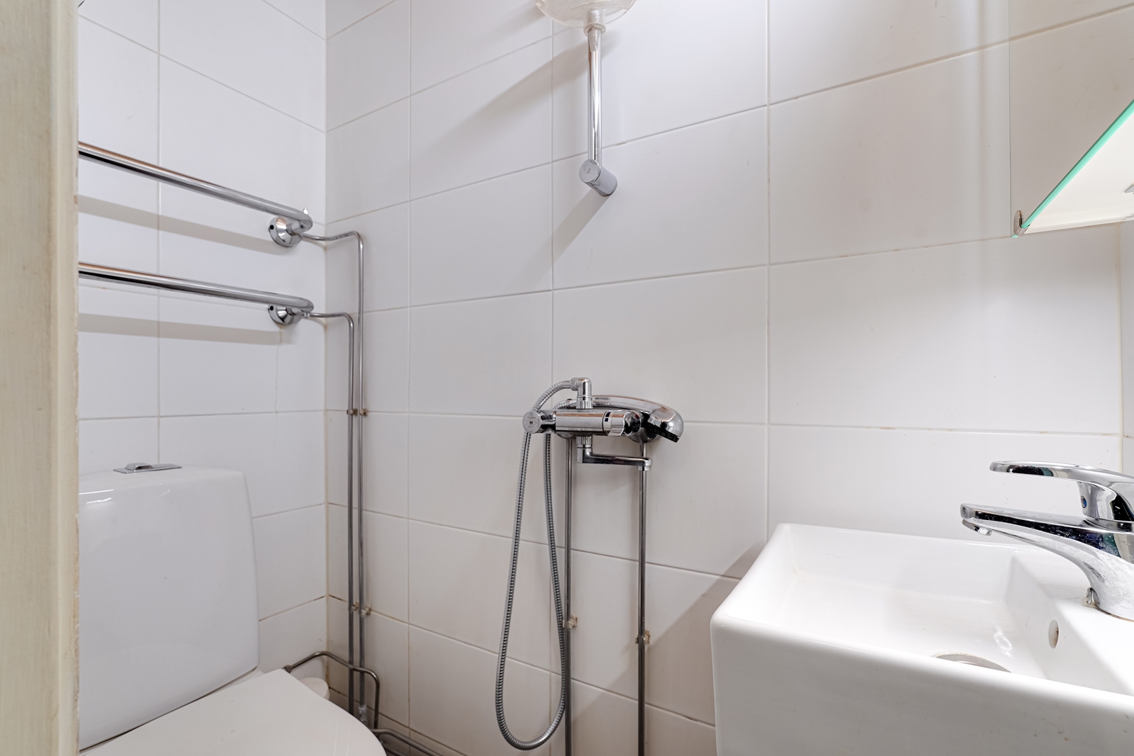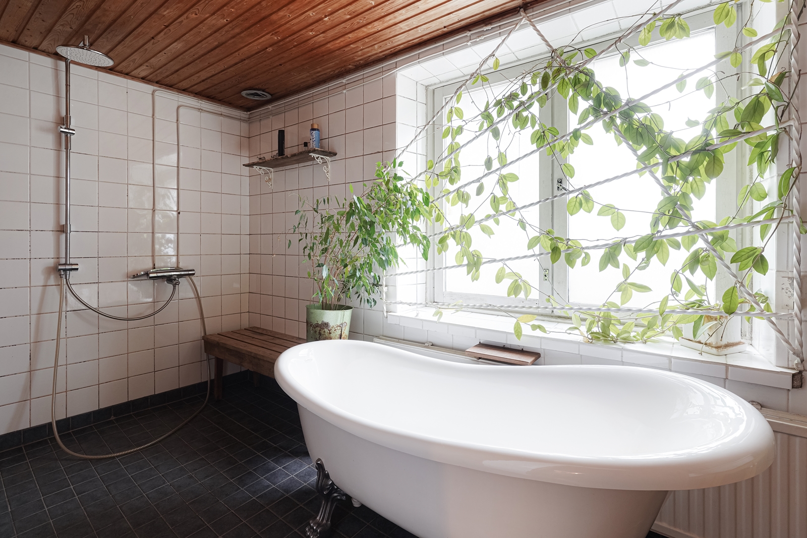 | Kylpyhuoneen kuvaus | WC-istuin, suihku, pesuallas ja peili, seinät (kaakeli), lattiat (laatta) |