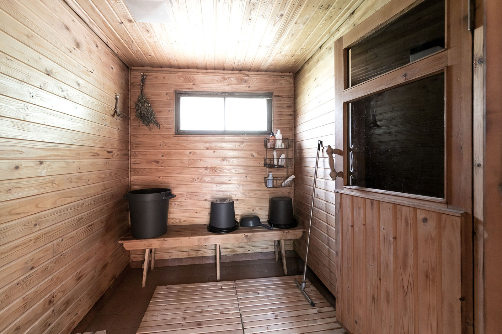 Talousrakennus. Pihassa talousrakennus, jossa sauna, lämpöeristetty huonetila, kylmää varastotilaa. Maakellari. |