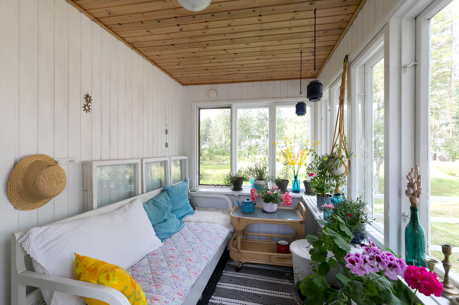 Puolilämmin kuisti: lauta lattia, jonka päällä muovimatto, seinät: paneeli. |