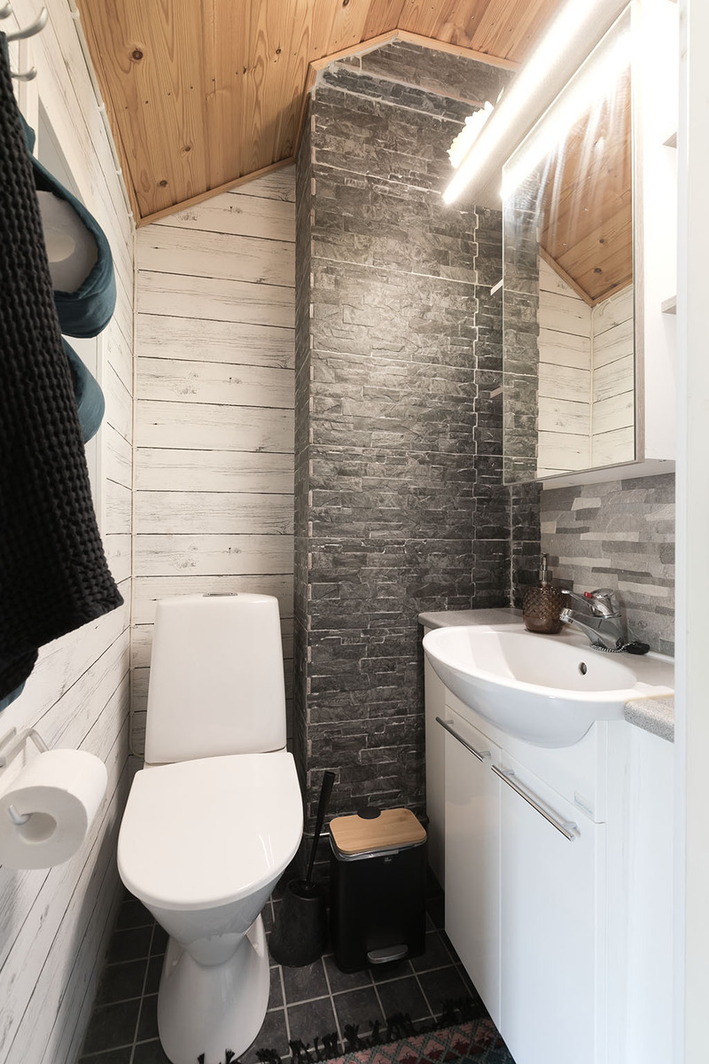 Lukumäärä: 2, Bidee-suihku, seinät (Tapetti, maali ja puu), lattiat (Laatta) |