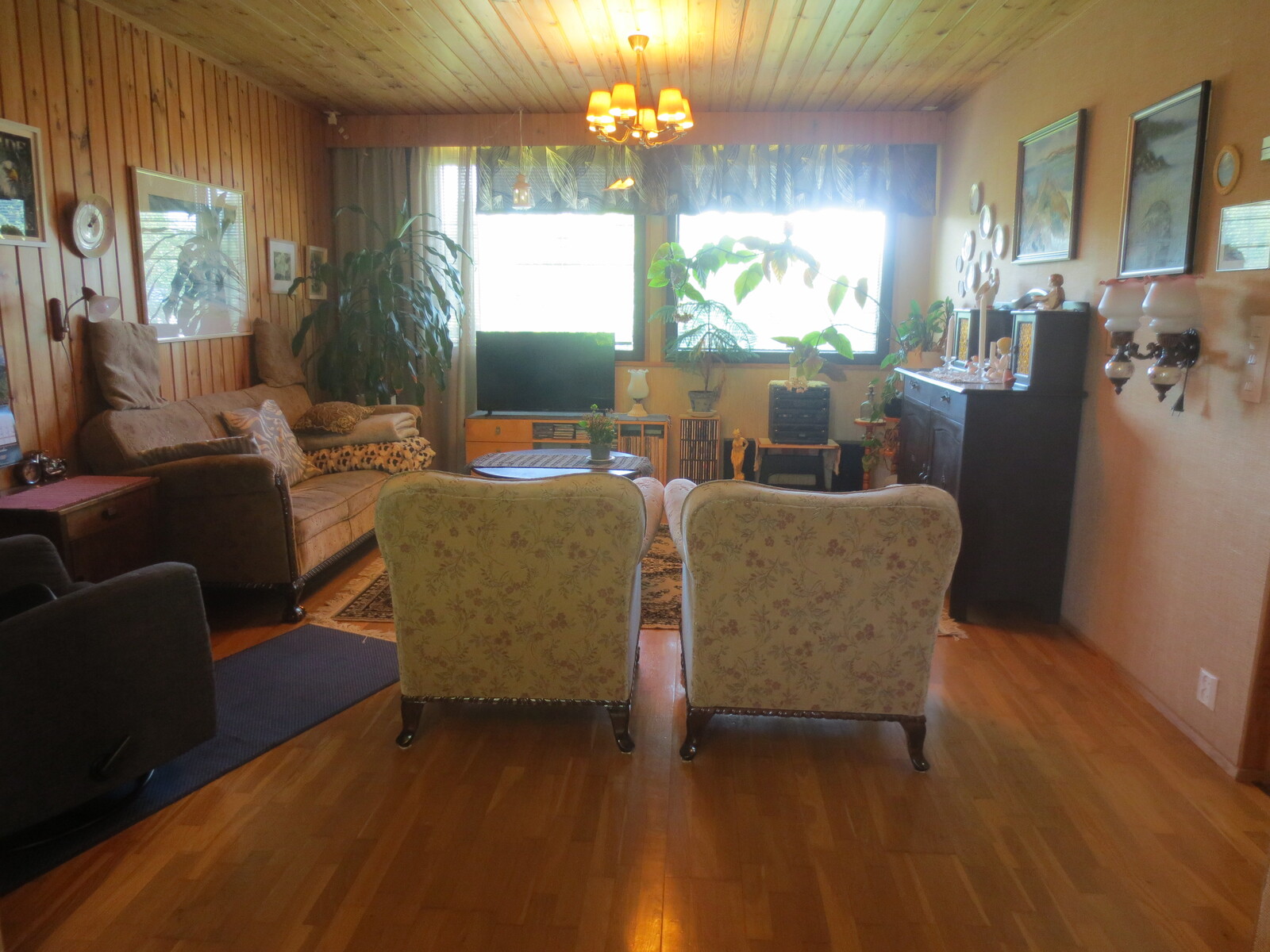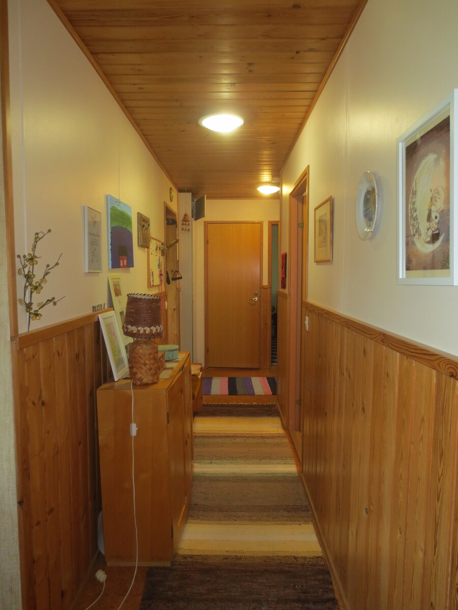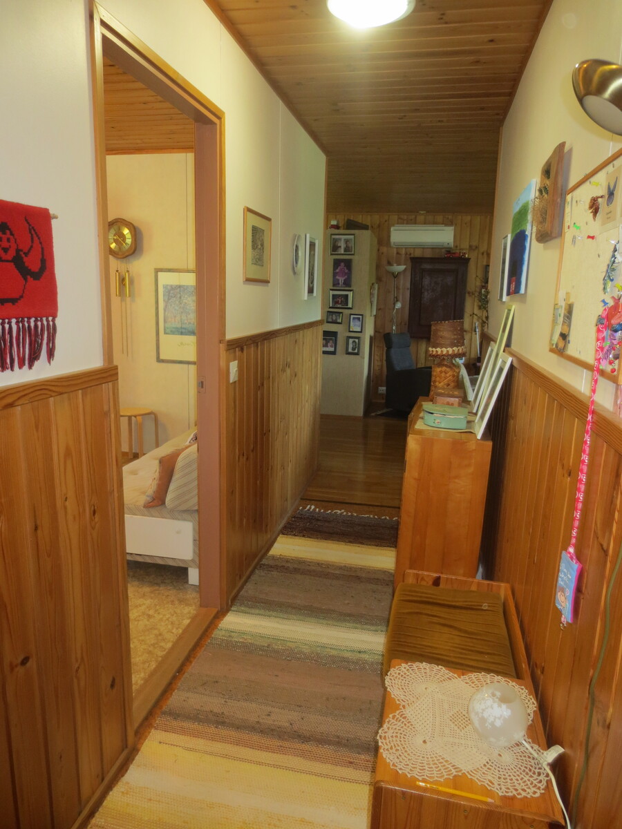 | Olohuoneen kuvaus | Seinät (puu ja tapetti), lattiat (parketti), lautapaneli katot |