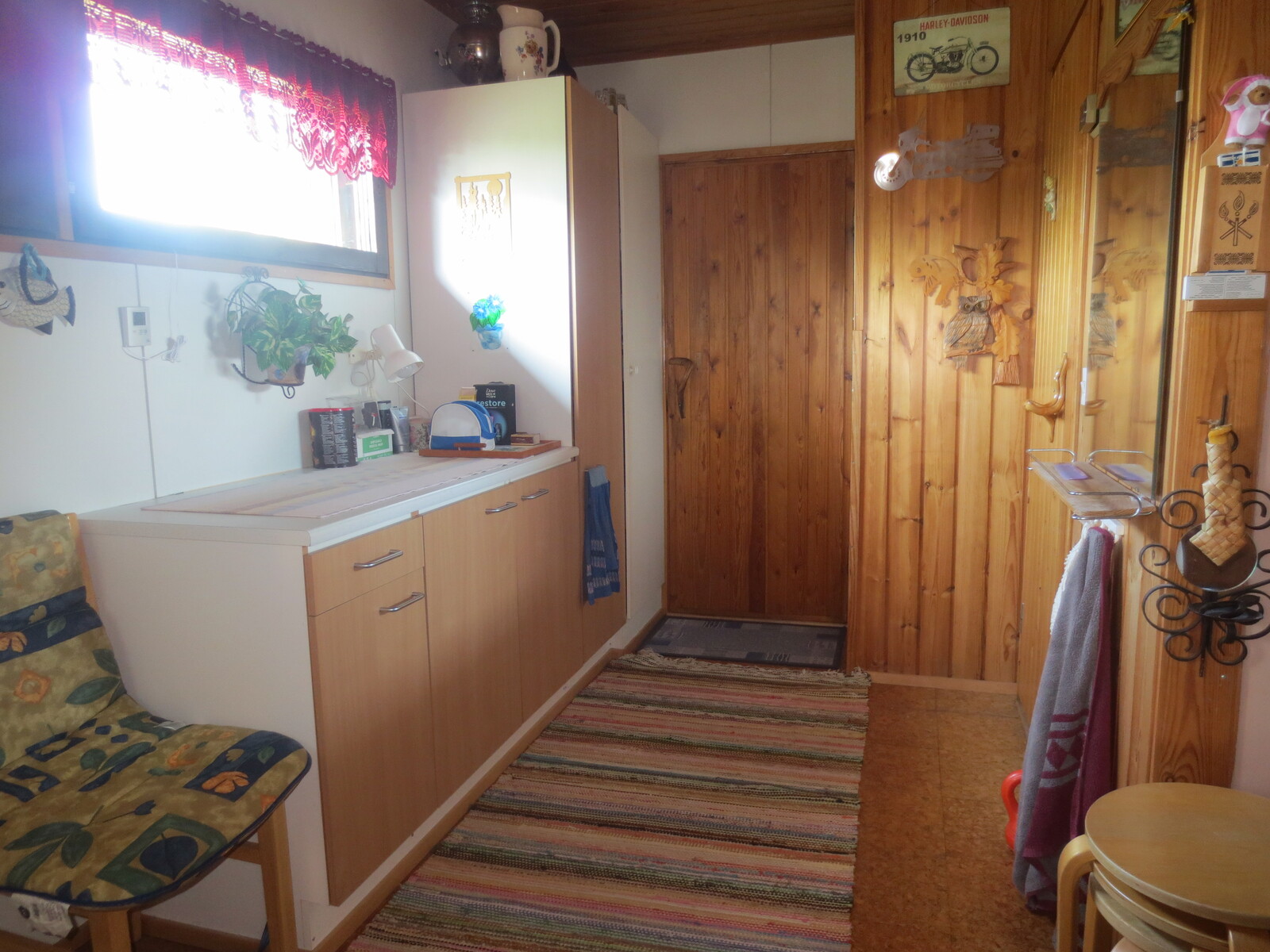 | Kodinhoitohuoneen kuvaus | Pöytätaso, lastenhoitopöytä/taso ja lattialämmitys, lattiat (korkki), seinät (maali) |