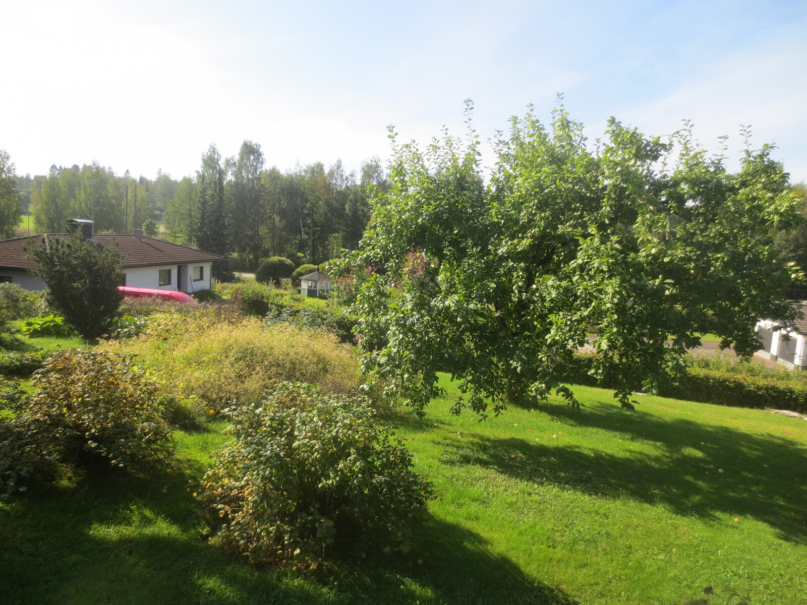 | Lisätietoja tontista | Nurmetettu monimuotoinen tontti, koriste- ja hyöty istutuksia |