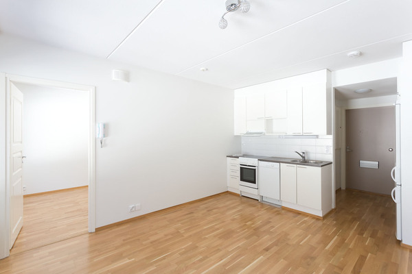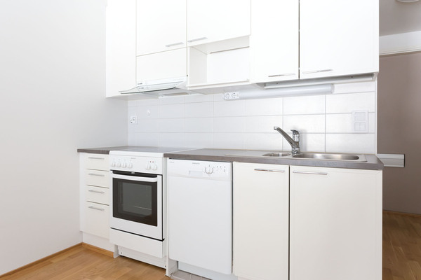 | Keittiön kuvaus | Liesi (Keraaminen liesi), työtasot (laminaatti), seinät (maali), lattiat (parketti), jääkaappipakastin, astianpesukone ja liesituuletin / hormi, kiinteät valaisimet |