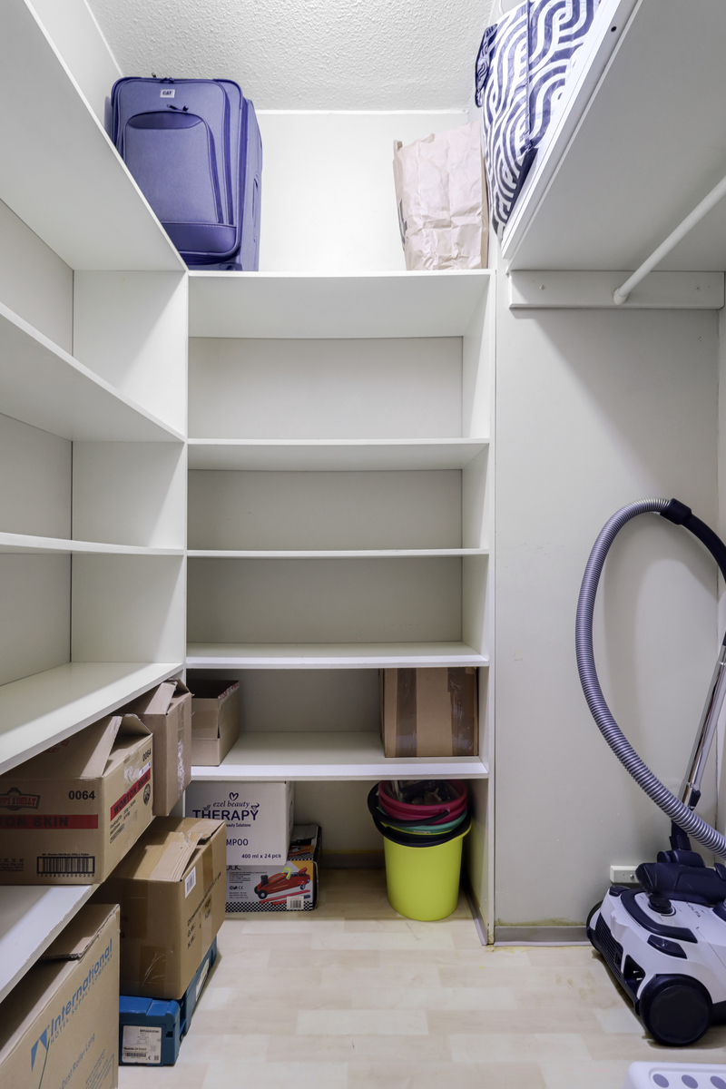 Vaatehuone ja eteisen liukuovikaapisto, erinomaiset säilytystilat.
