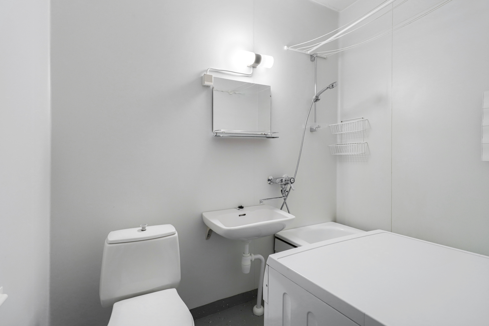 | Kylpyhuoneen kuvaus | Pesukoneliitäntä, wc-istuin, peili, kylpyamme, suihku ja kiinteät valaisimet, seinät (muovimatto) |