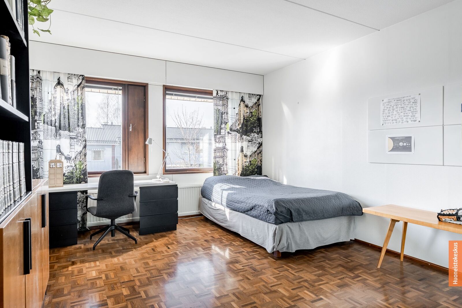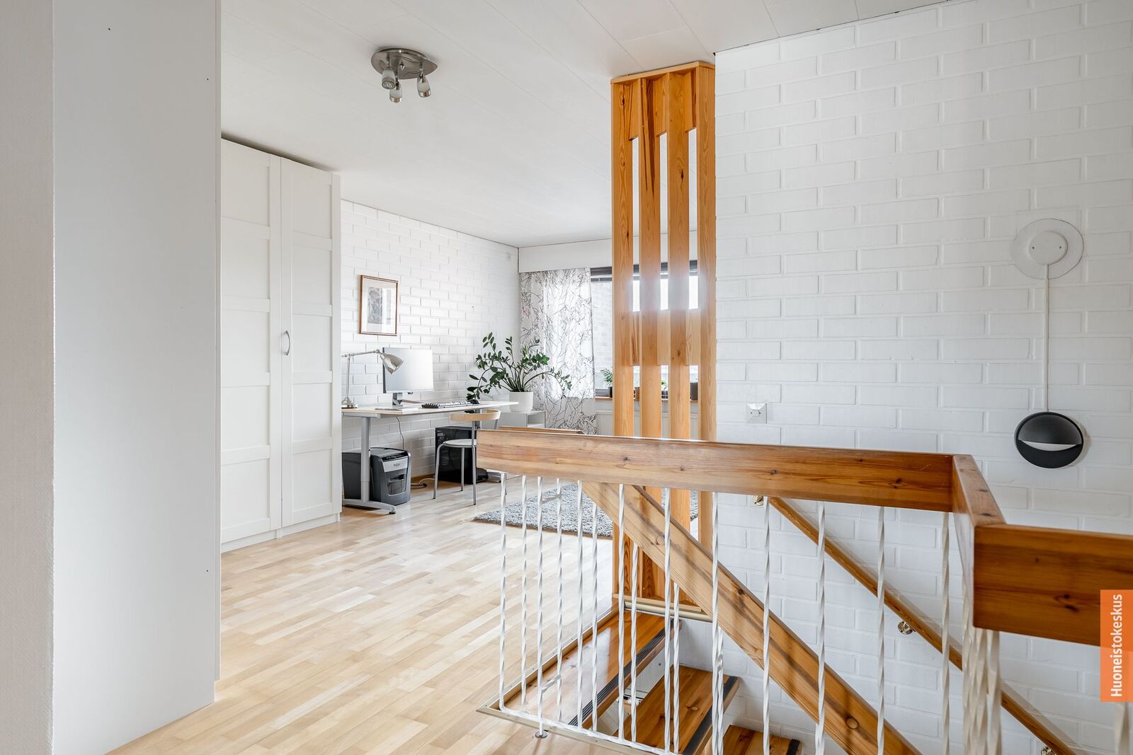 Yläkerran rauhassa sijaitsevat kodin kolme makuuhuonetta. Yläkerrassa on myös todella tilava aulatila, joka soveltuu esim. arkiolohuoneeksi, TV:n katseluun tai lasten leikkeihin ja sieltä on käynti parvekkeelle. Huoneissa on hyvin säilytystilaa, on kaappeja ja vaatehuone. Arkea helpottaa että toinen kylpyhuone löytyy yläkerrasta ja w:t ovat molemmissa kerroksissa.