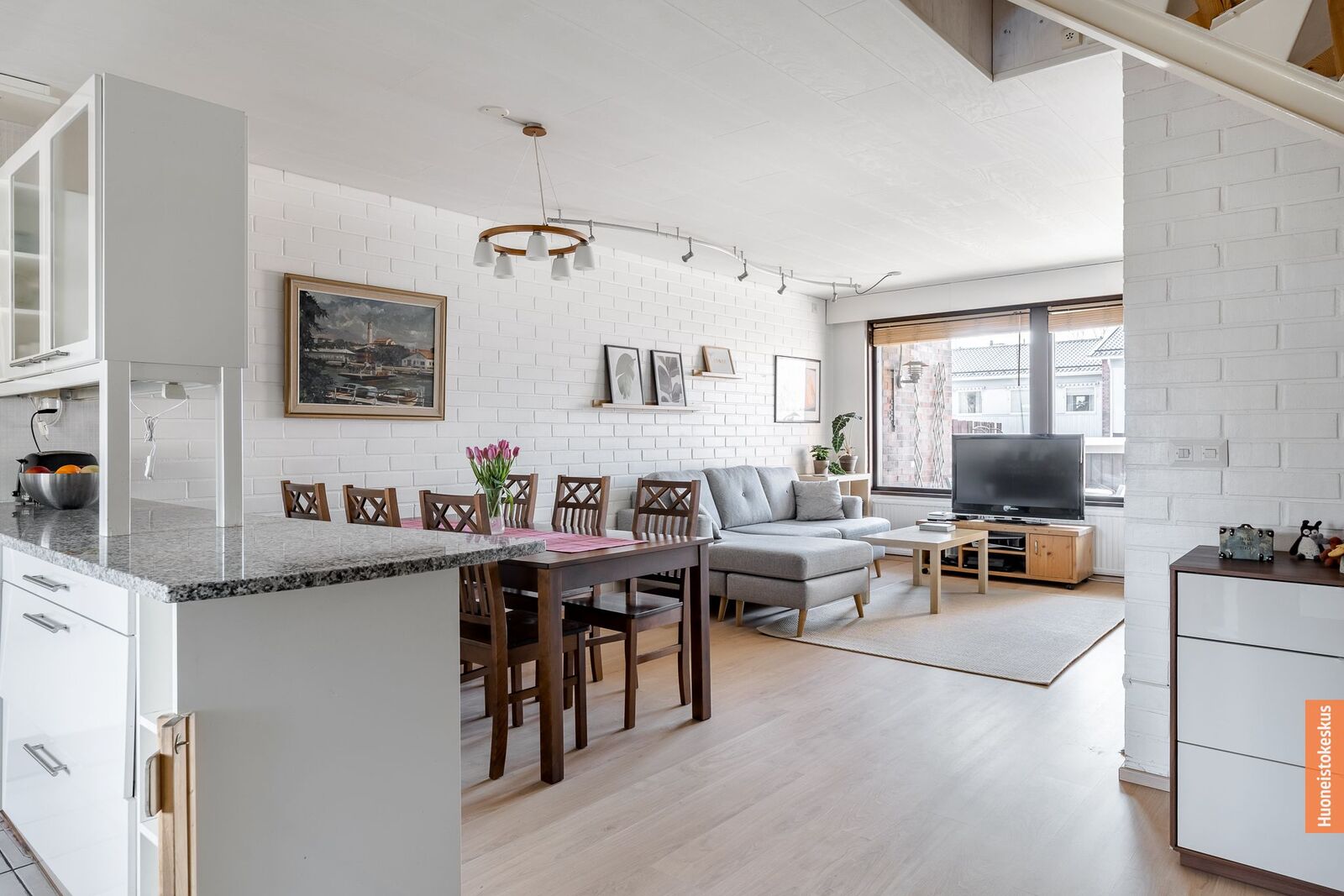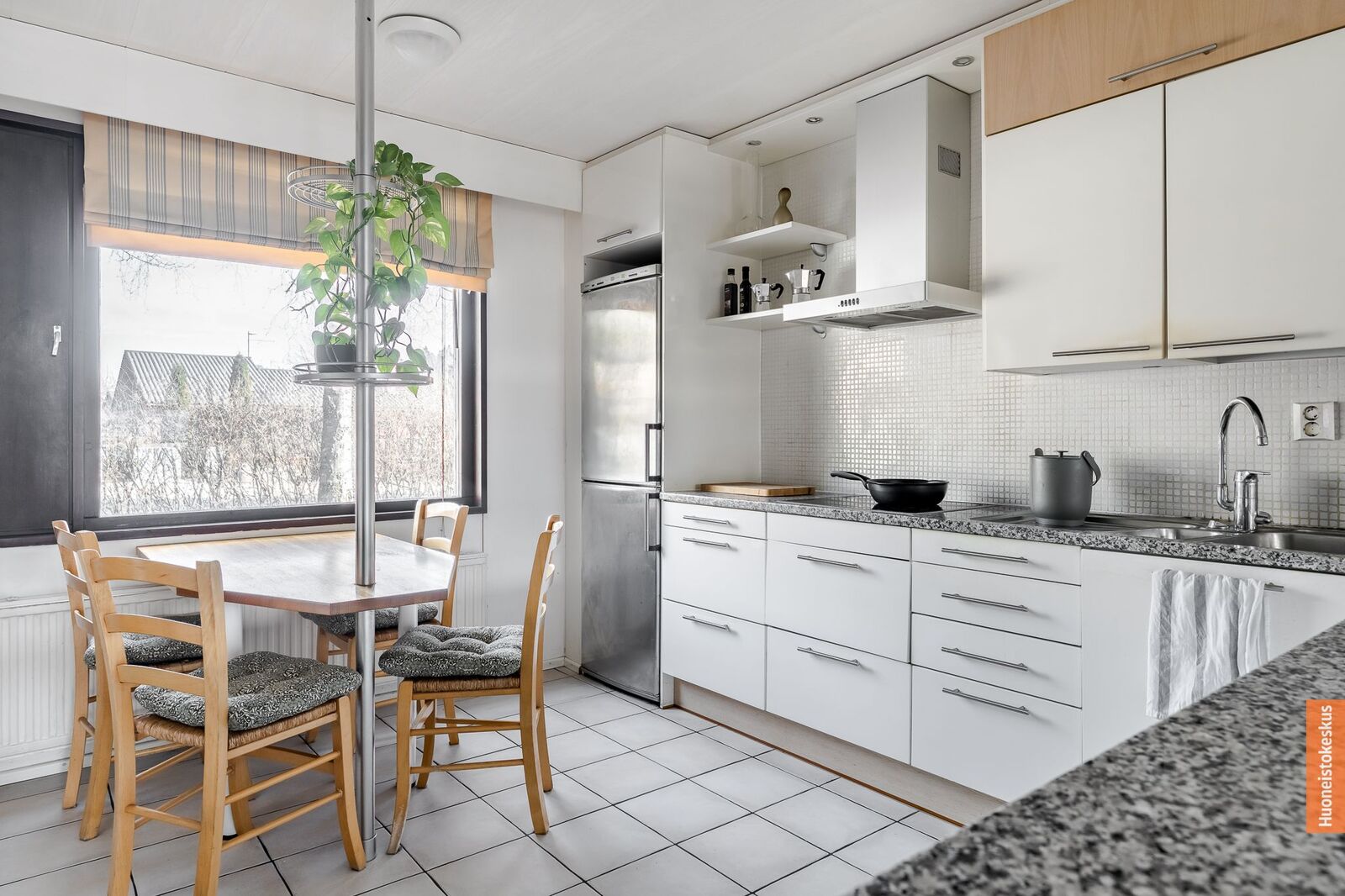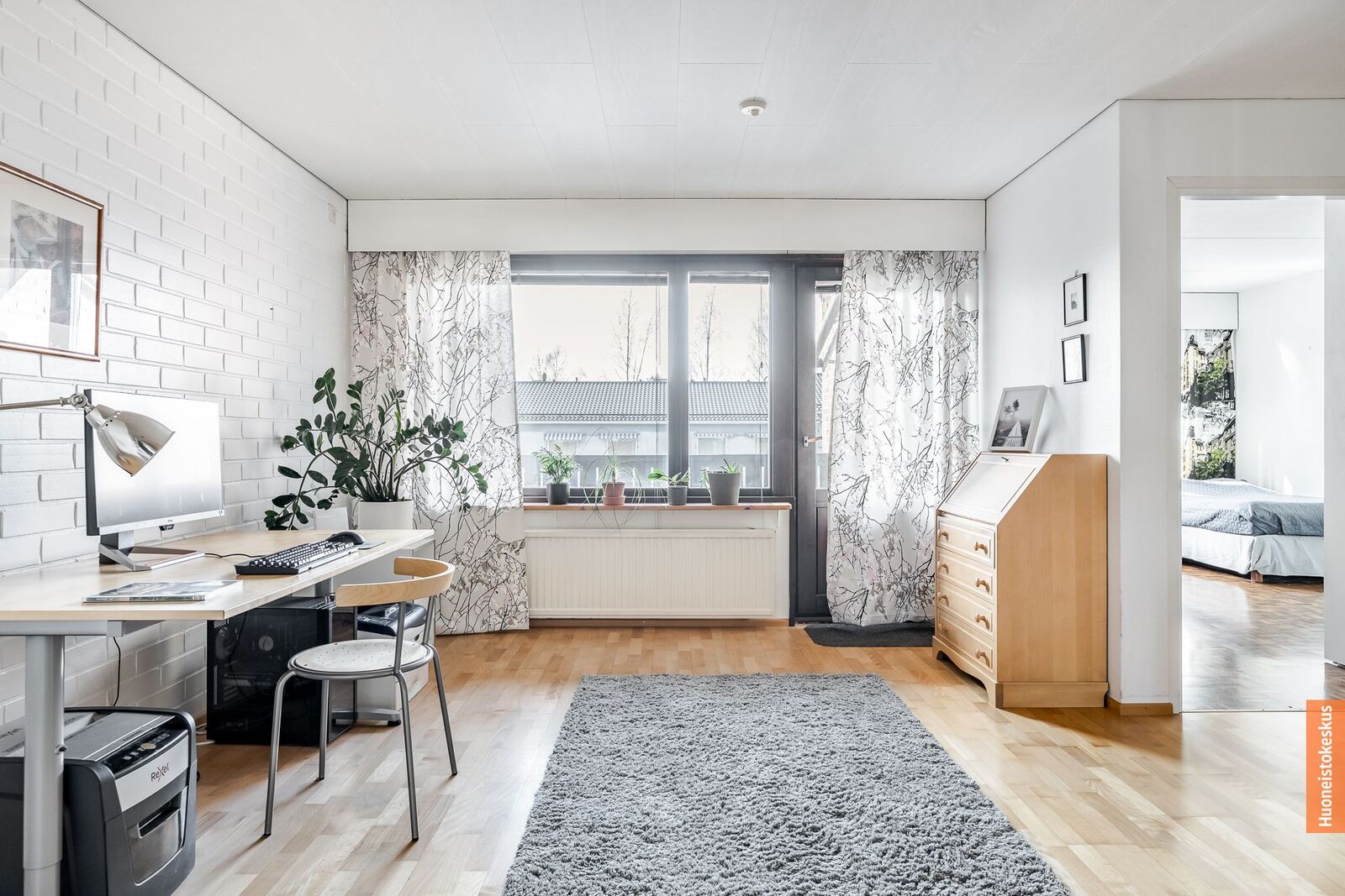 Toimivalla pohjaratkaisulla oleva kaunis päätyhuoneisto Hurttivuoressa odottaa uusia asukkaita.