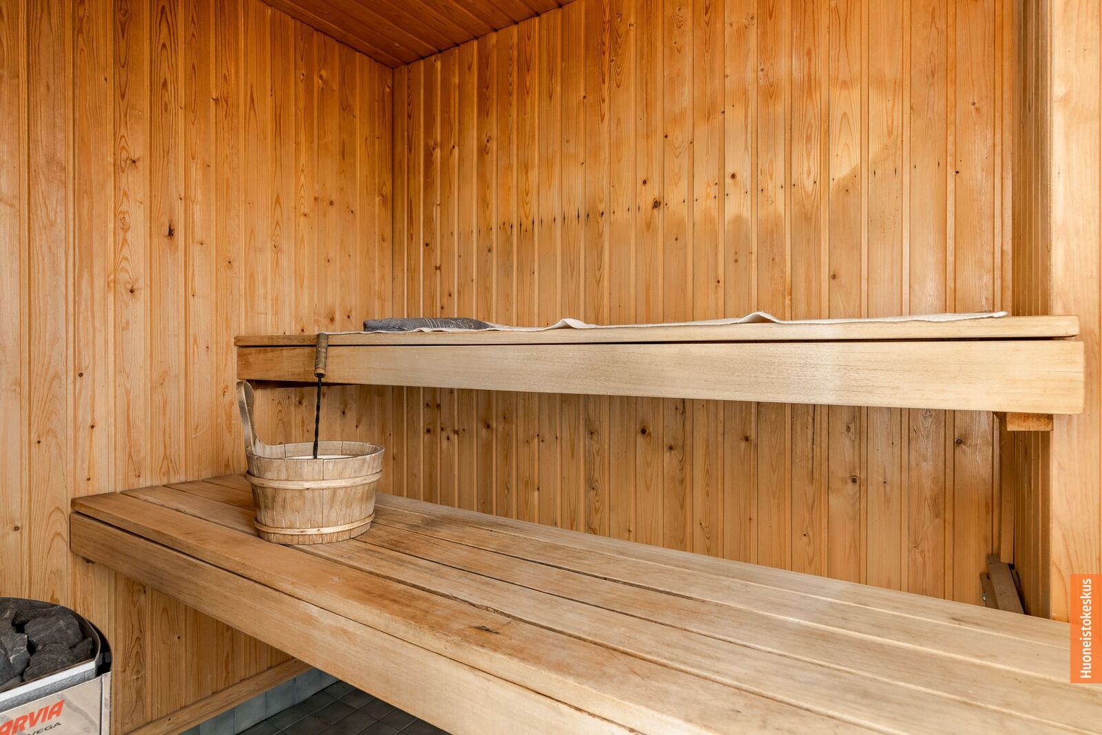 | Saunan kuvaus | Seinät (puu), lattiat (laatta), Sähkökiuas |