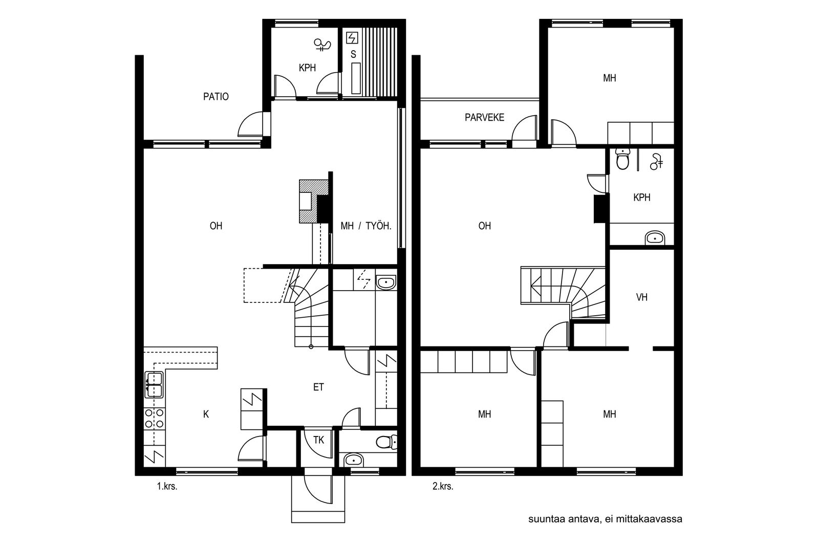 | Huoneistoselitelmä | Oh, k, 3 mh, työhuone, kph, s |