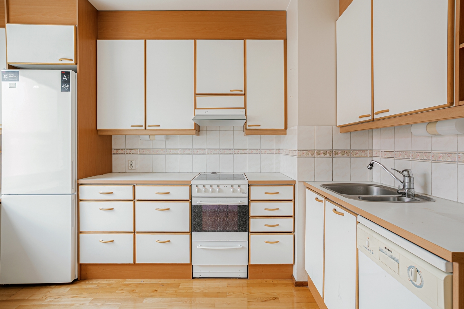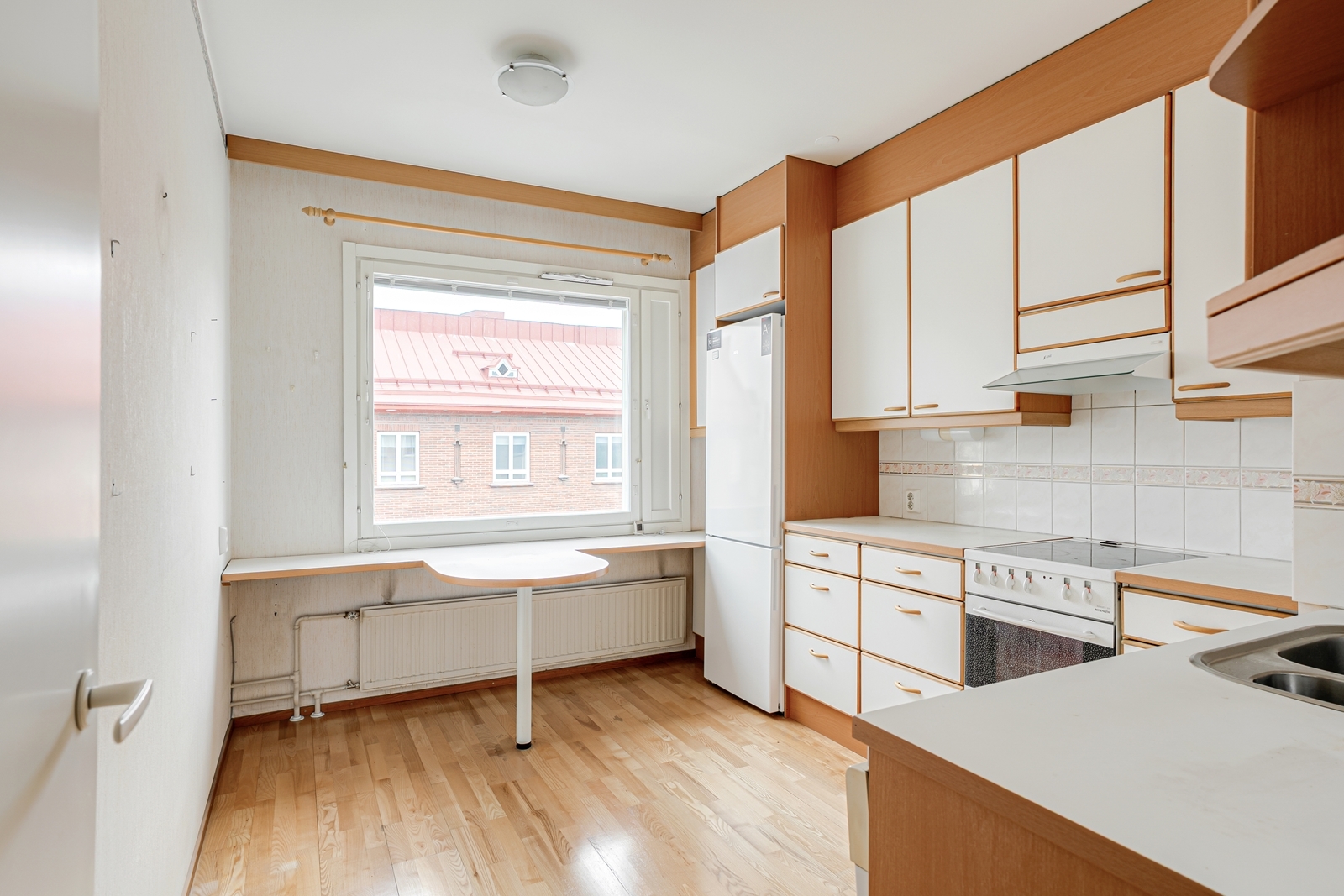 | Keittiön kuvaus | Liesi (Keraaminen liesi), työtasot (laminaatti), seinät (laatta ja tapetti), lattiat (parketti), jääkaappipakastin, liesituuletin, astianpesukone ja kiinteät valaisimet |
