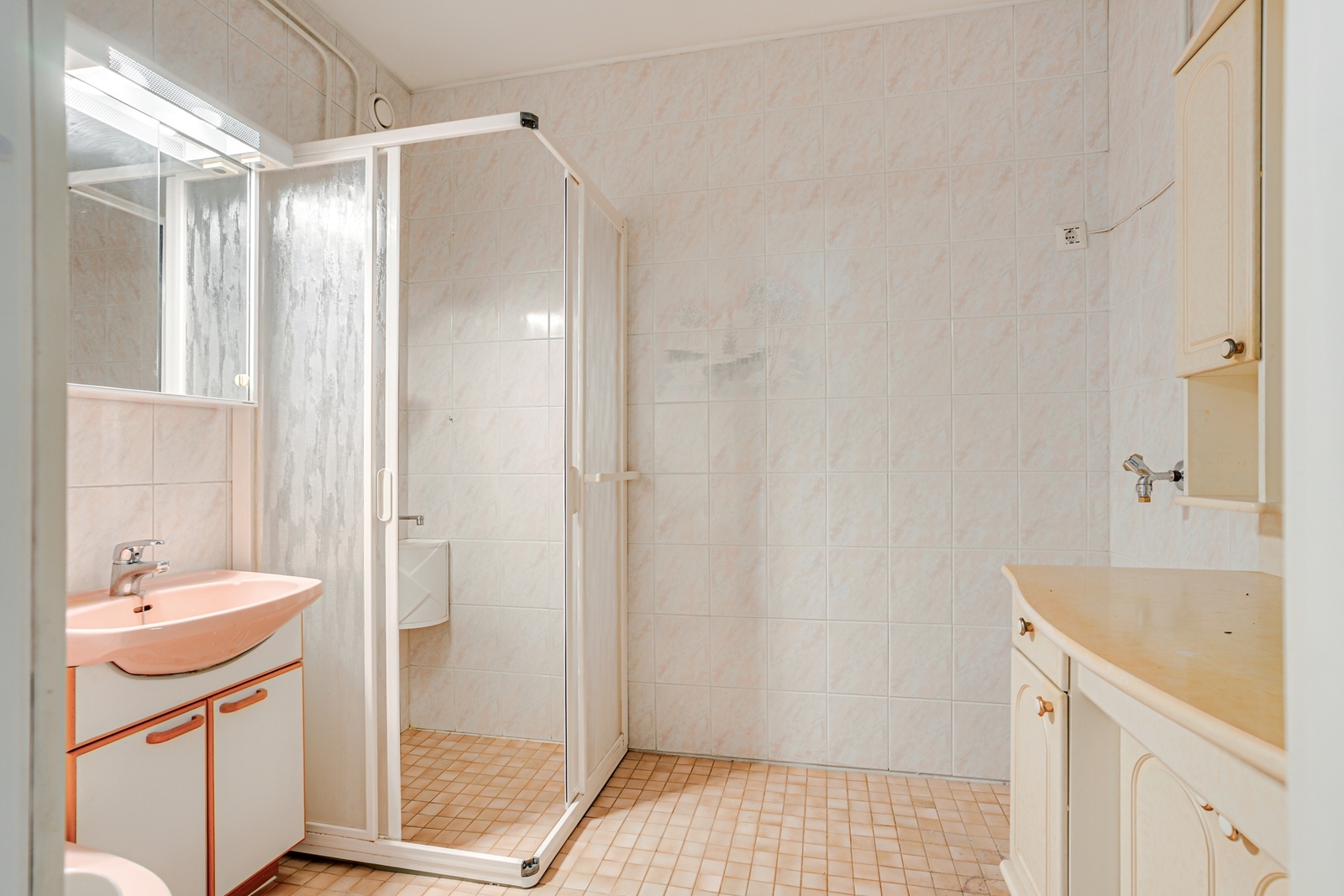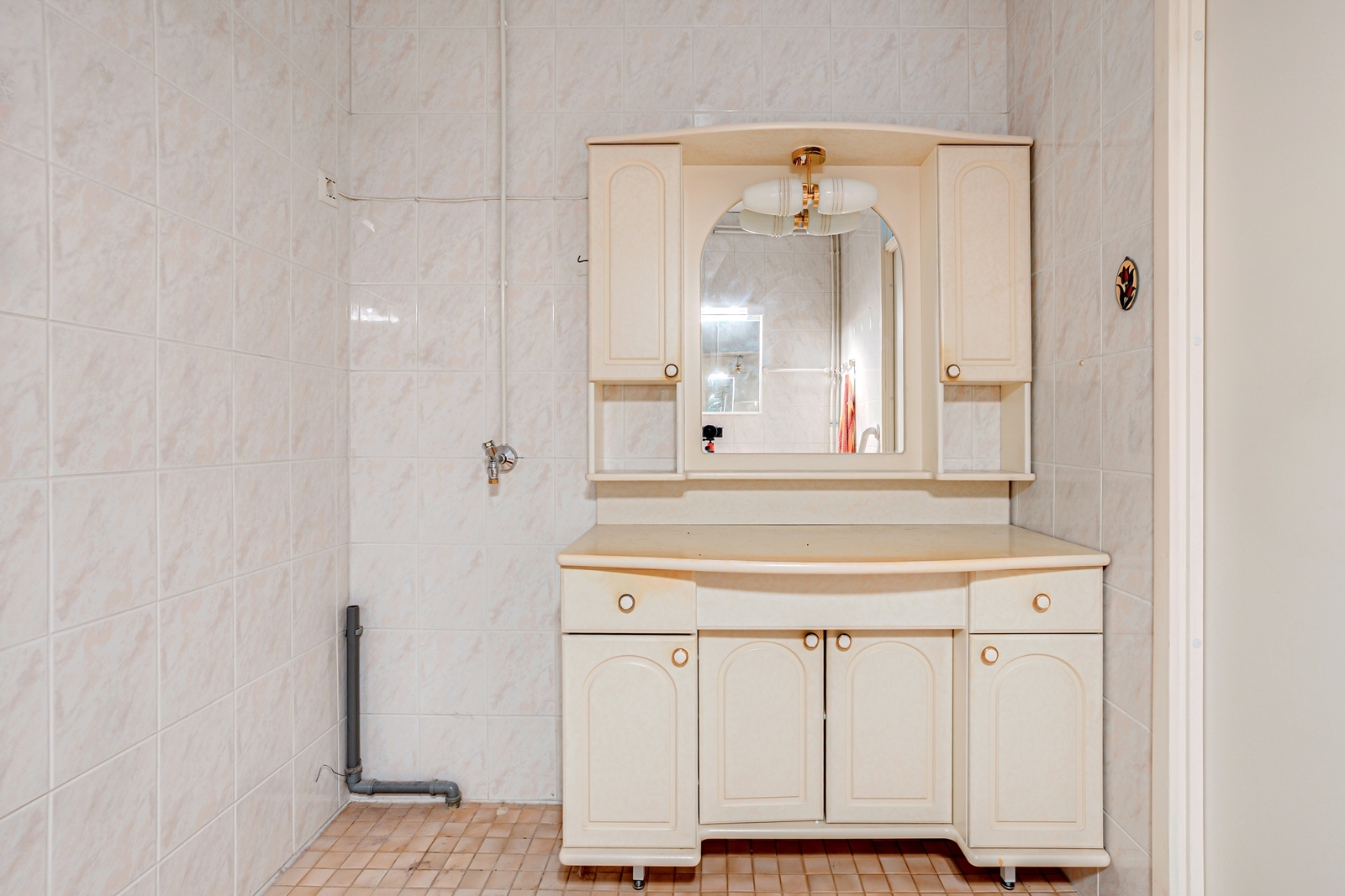 | Kylpyhuoneen kuvaus | Suihkuseinä, lattialämmitys, suihku, pesukoneliitäntä, wc-istuin, allaskaappi ja kiinteät valaisimet, seinät (kaakeli), lattiat (laatta) |