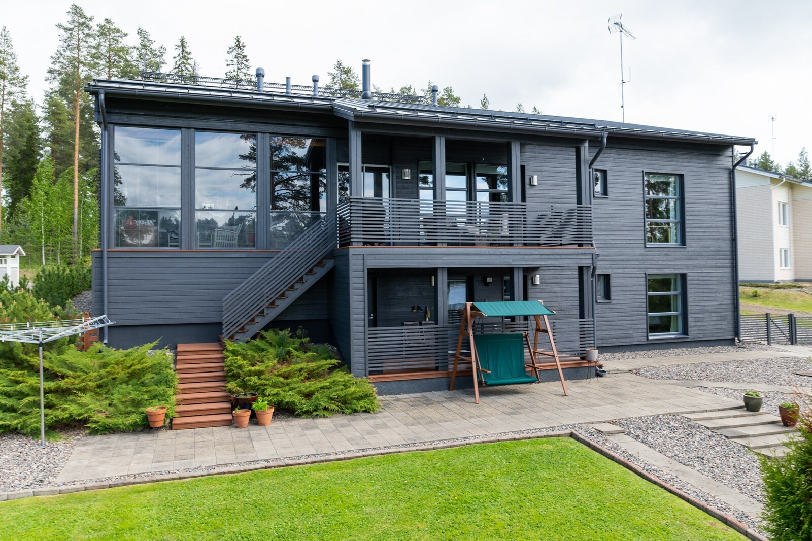 Huikean kauniilla rantatontilla Pielavesi- järven rannalla sijaitseva vuonna 2008 valmistunut kaksitasoinen moderni ja ajaton Kannustalo!