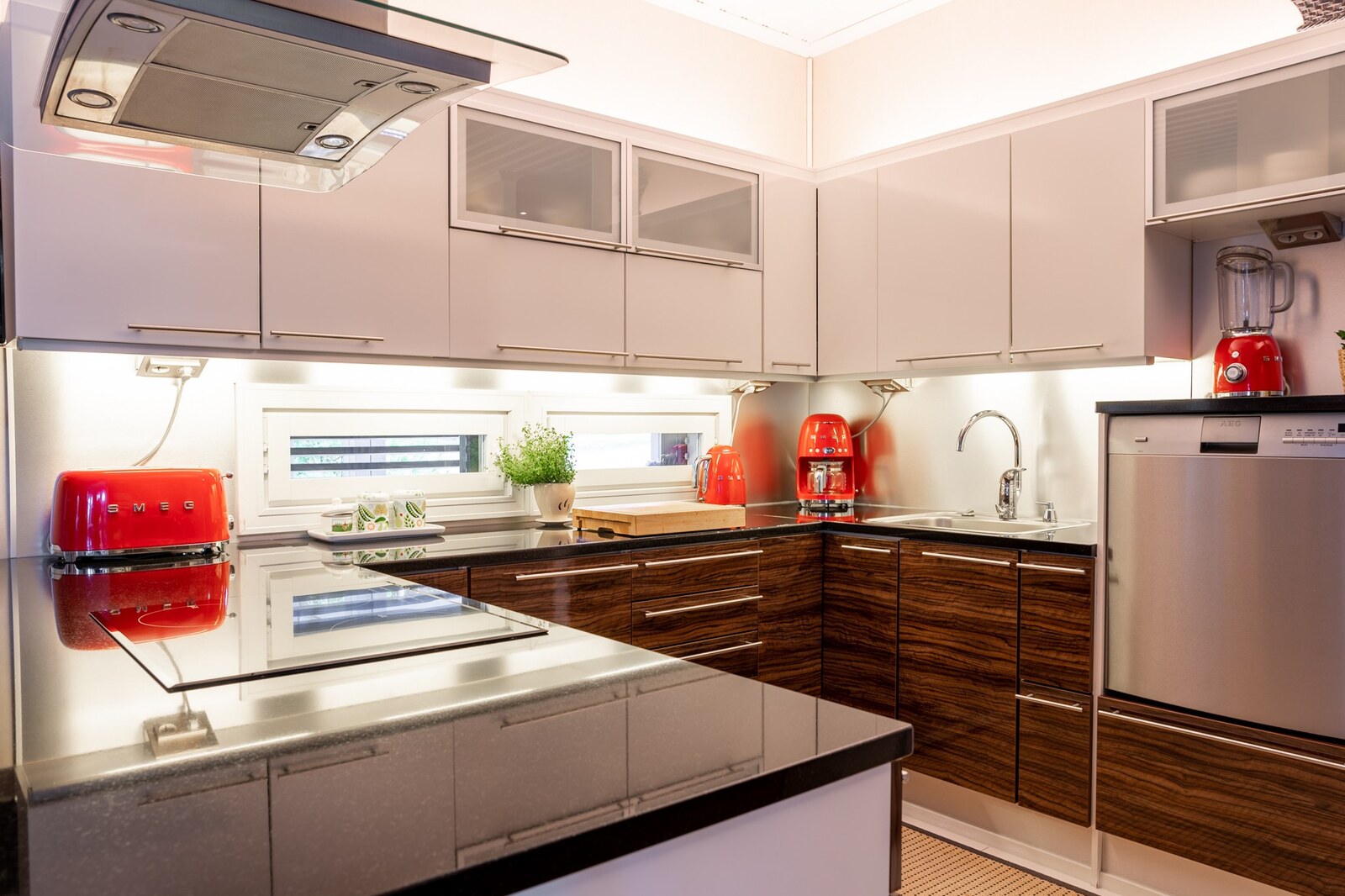 | Keittiön kuvaus | Liesi (Induktioliesi ja erillisuuni), työtasot (kivi), seinät (tapetti), lattiat (laatta), erillisuuni, mikroaaltouuni, erillinen pakastin, astianpesukone, jääkaappi, liesi ja kiinteät valaisimet, – Topi- keittiö – AEG- kodinkoneet – apteekkarinkaappi – kahviautomaatti AEG – ilmalämpöpumppu – pikkuikkunat etupihalle |