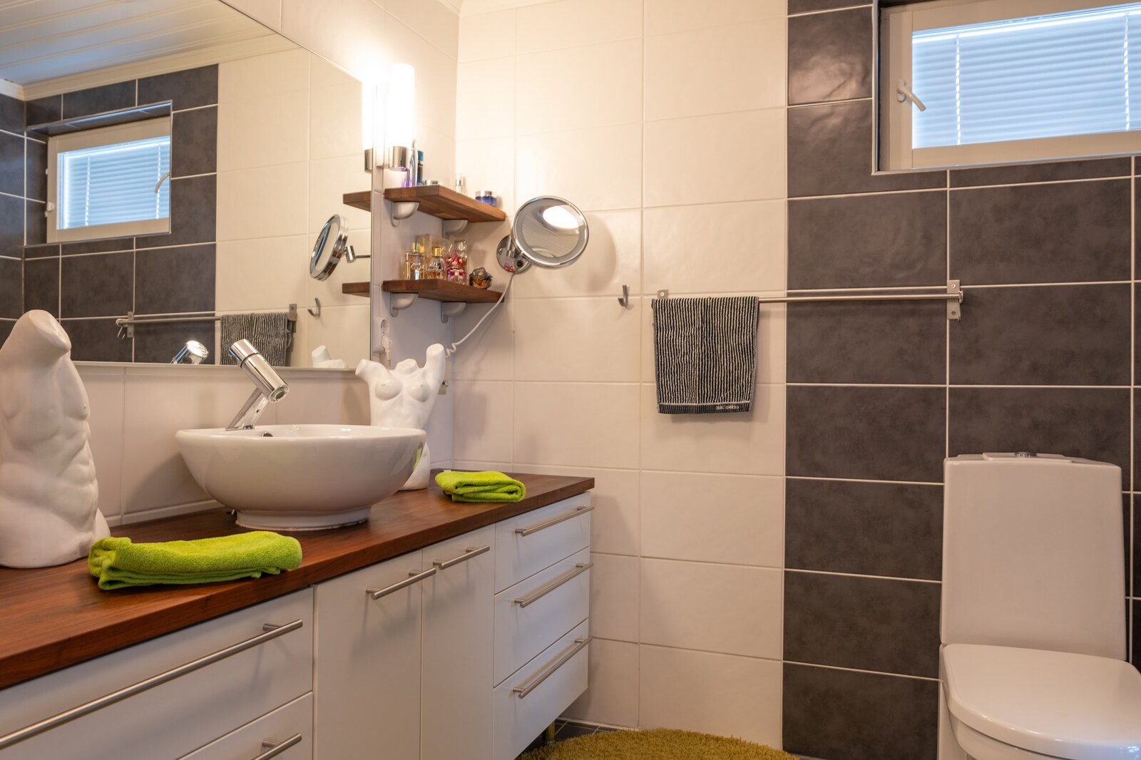 Alakerrassa on kuntoiluhuone, tilava makuuhuone pukeutumistiloineen, toimivat kodinhoitotilat sekä vähän käytetty sisäsaunaosasto. Sekä lämmintä että kylmää varastotilaa löytyy runsaasti. Autolle on oma sähkölatauspiste katoksen alla.