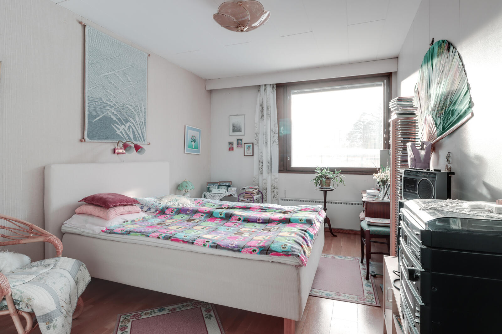 | Makuuhuoneen kuvaus | Seinät (maali), lattiat (muovimatto ja parketti) |