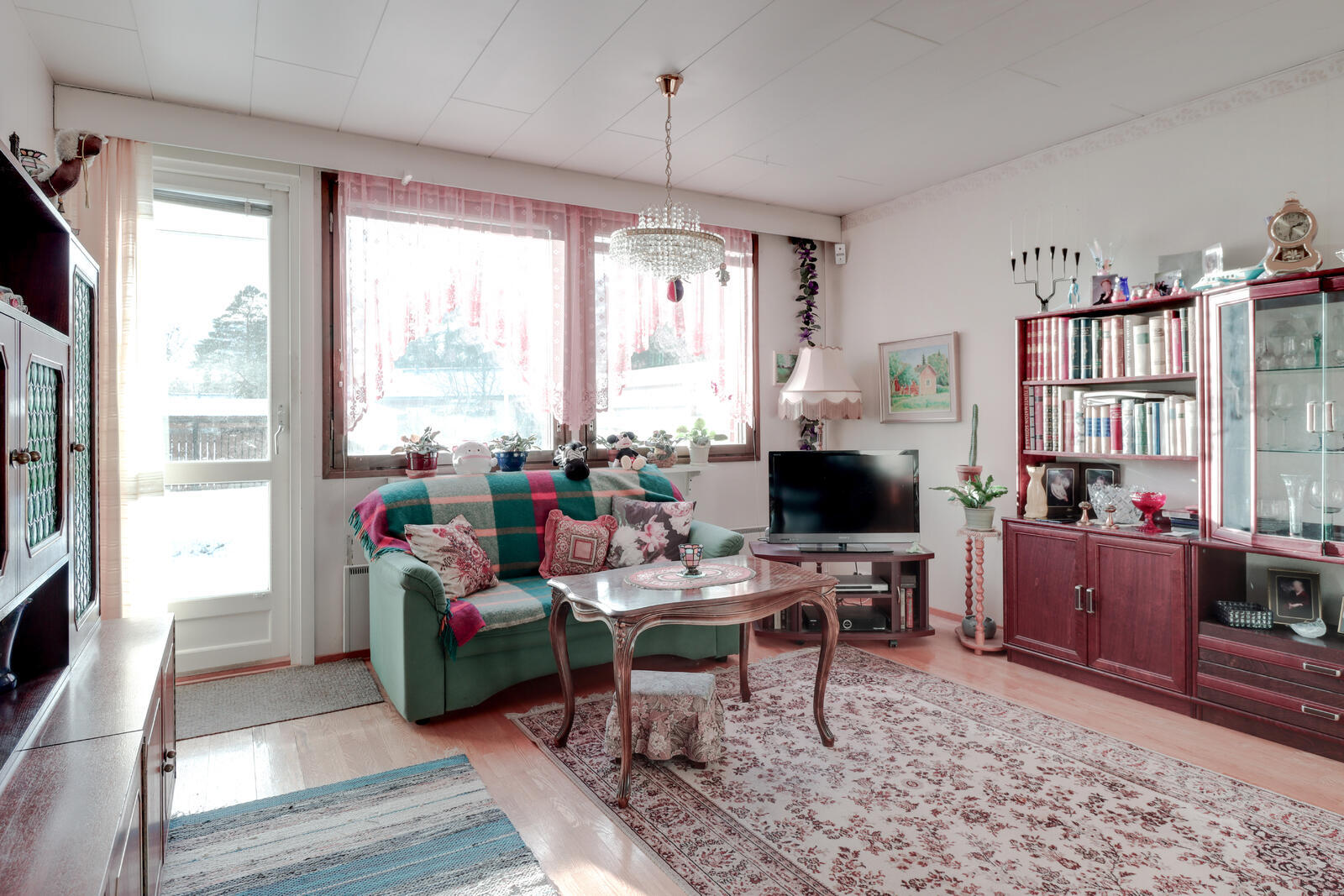 | Olohuoneen kuvaus | Seinät (maali ja tapetti), lattiat (parketti) |