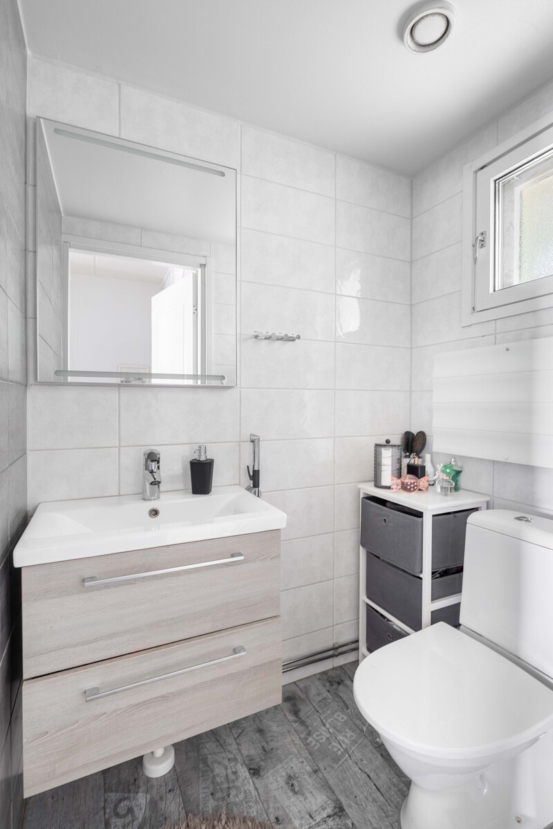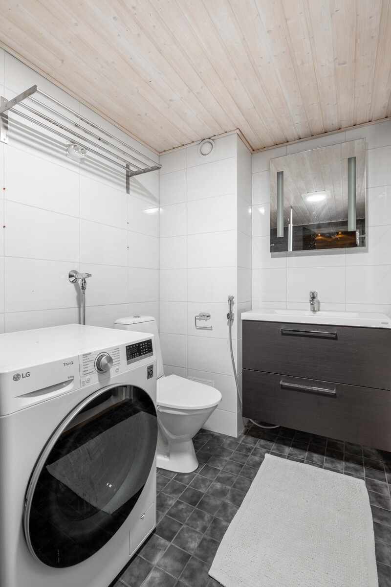 | Kylpyhuoneen kuvaus | Suihkuseinä, suihku, pesukoneliitäntä ja wc-istuin, seinät (kaakeli), lattiat (laatta) |