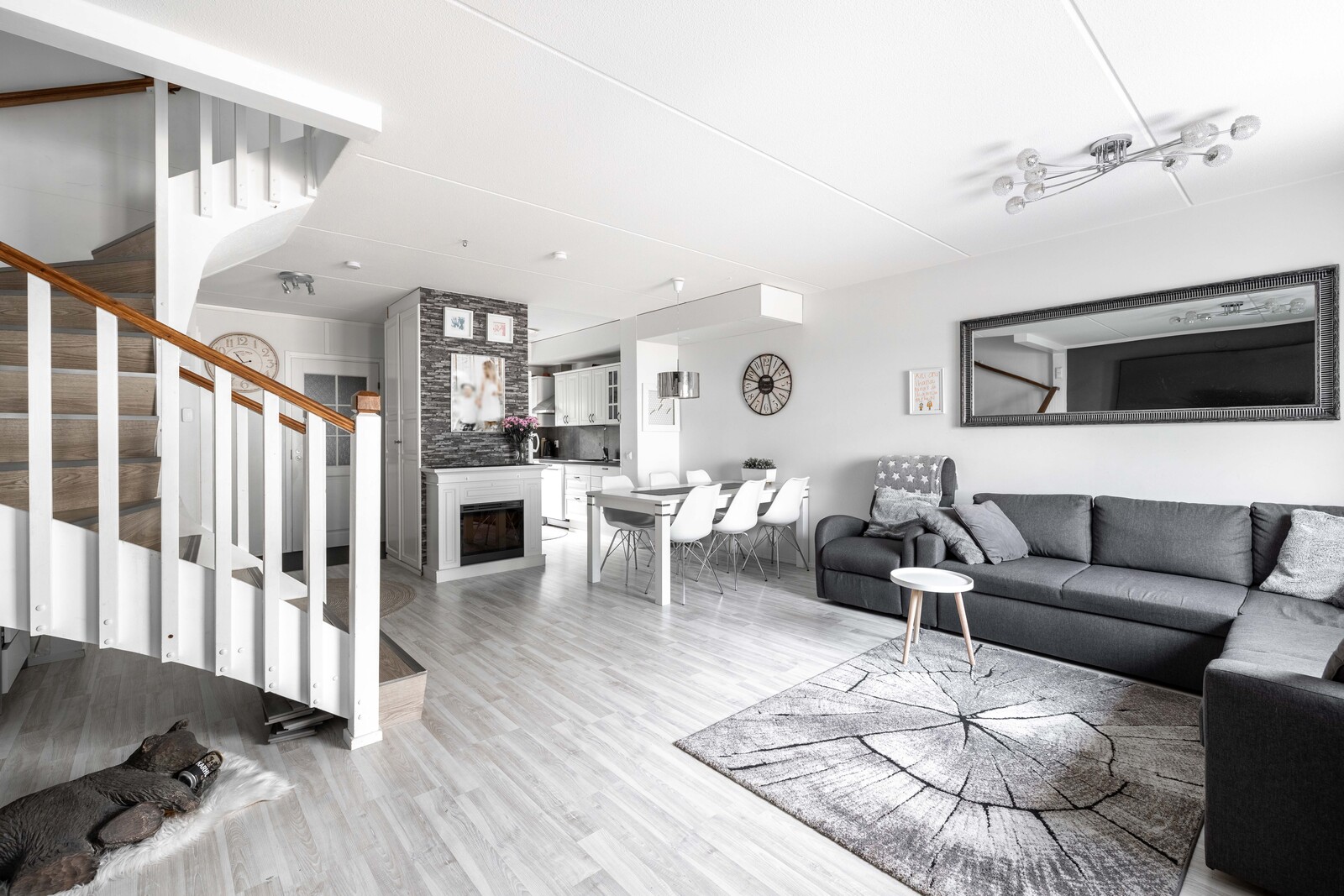 Tämä tilava koti tarjoaa erinomaiset puitteet isommallekin perheelle. Alakerrassa olohuone ja keittiö muodostavat yhtenäisen, avaran kokonaisuuden, joka kutsuu viettämään yhteisiä hetkiä. Lisäksi alakerrasta löytyy käytännöllinen erillinen wc.