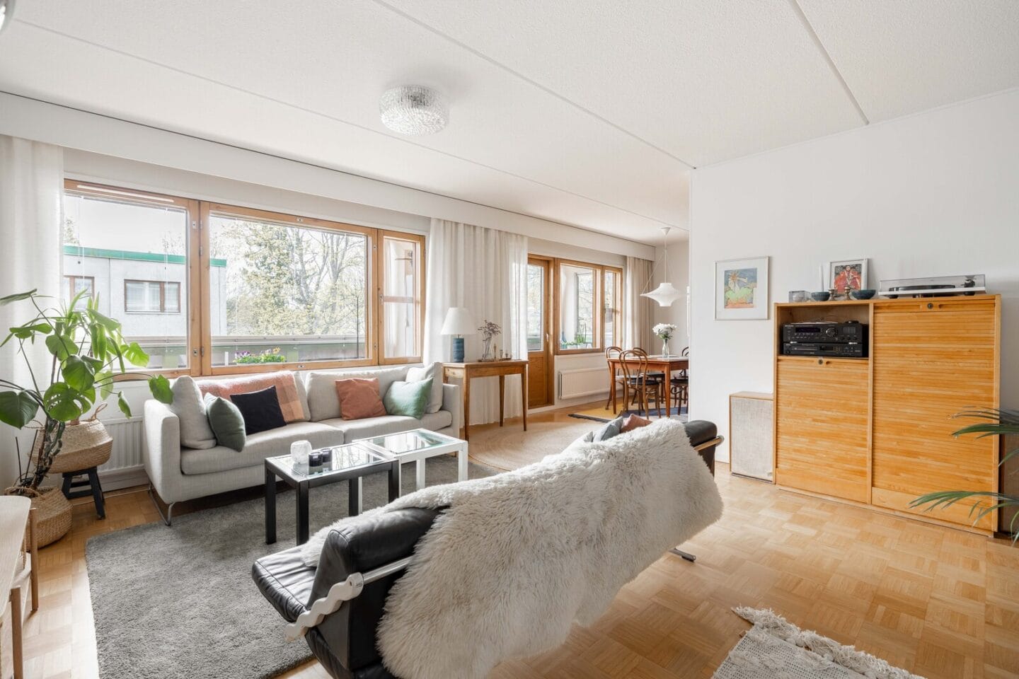 Tämä hyväkuntoinen asunto tarjoaa toimivan pohjaratkaisun – kolme reilunkokoista makuuhuonetta, oma sauna, erillinen wc ja runsaasti säilytystilaa. Keittiö ja ruokailutila avautuu tilavaan olohuoneeseen. Koko huoneiston levyinen lasitettu parveke, jonne on käynti olohuoneesta ja yhdestä makuuhuoneesta.