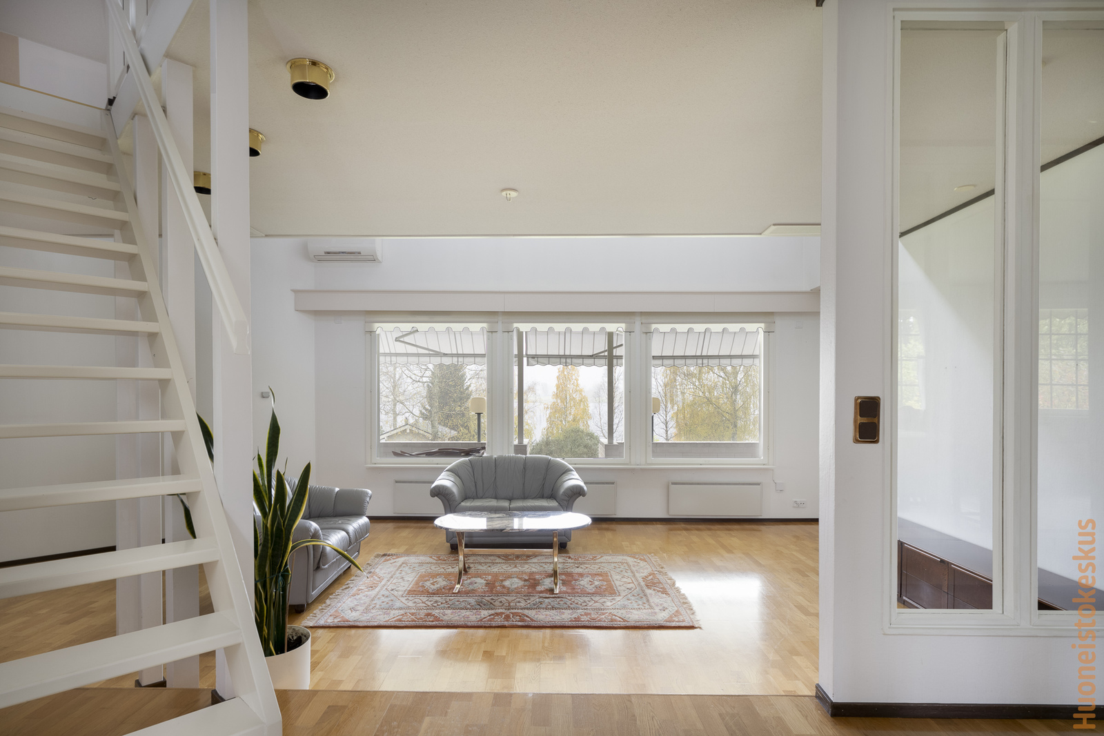 | Muuta kauppaan kuuluvaa | Huoneissa kaiutinjärjestelmä. Lipputanko. Lisätietoja sisältyvistä varusteista: ilmalämpöpumppu, istutukset, kaapistot, keskuspölynimuri, kiinteät valaisimet, markiisi, matontamppausteline, pyykinkuivausteline, sälekaihtimet/rullaverhot, verhotangot. |