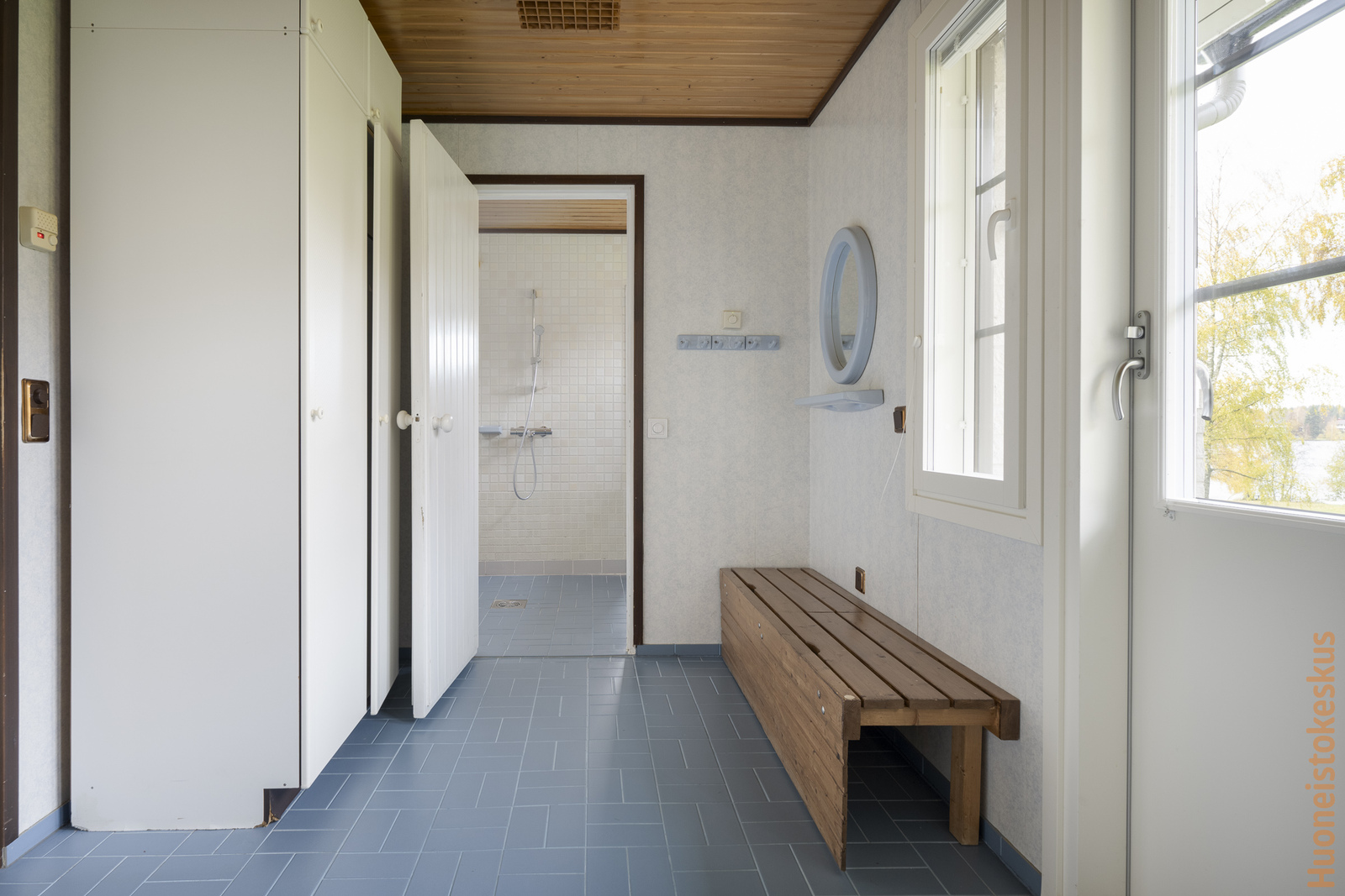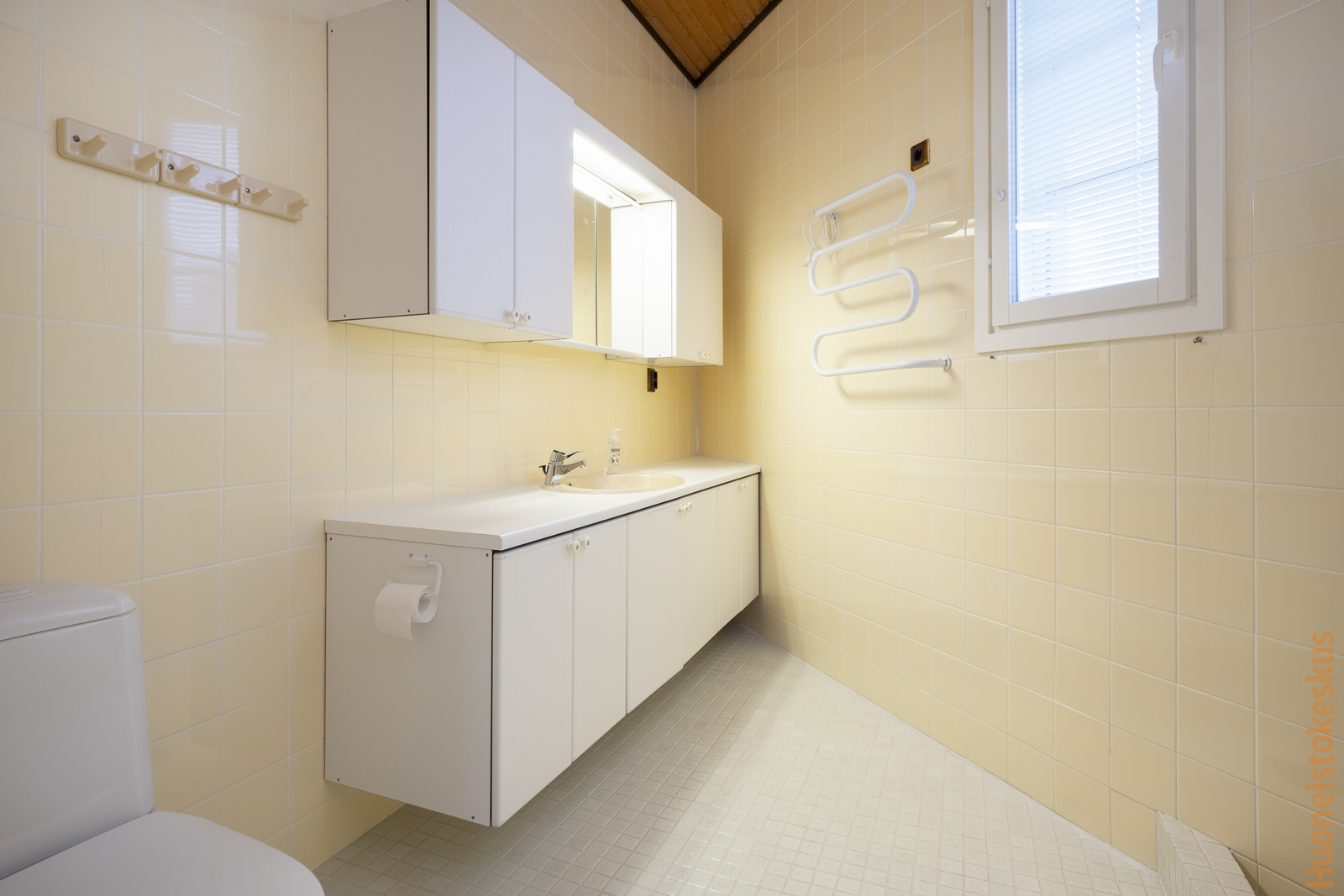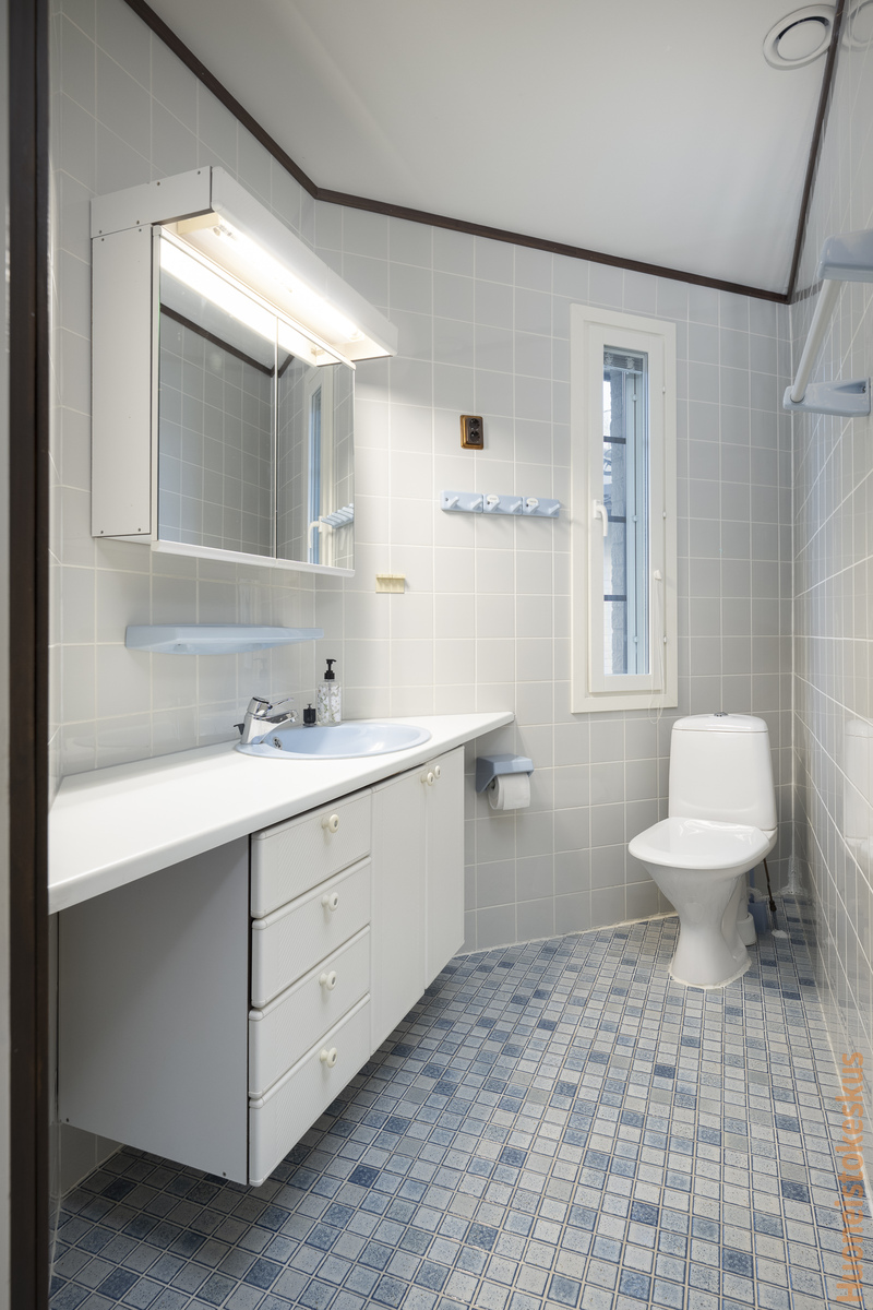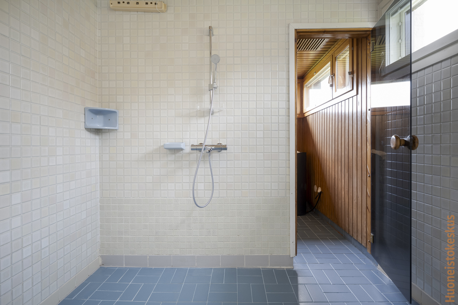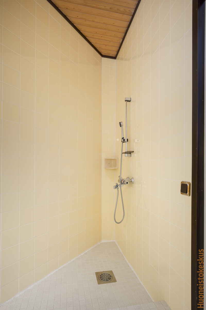 | Kylpyhuoneen kuvaus | Lattialämmitys, suihku ja kiinteät valaisimet, seinät (kaakeli), lattiat (laatta) |