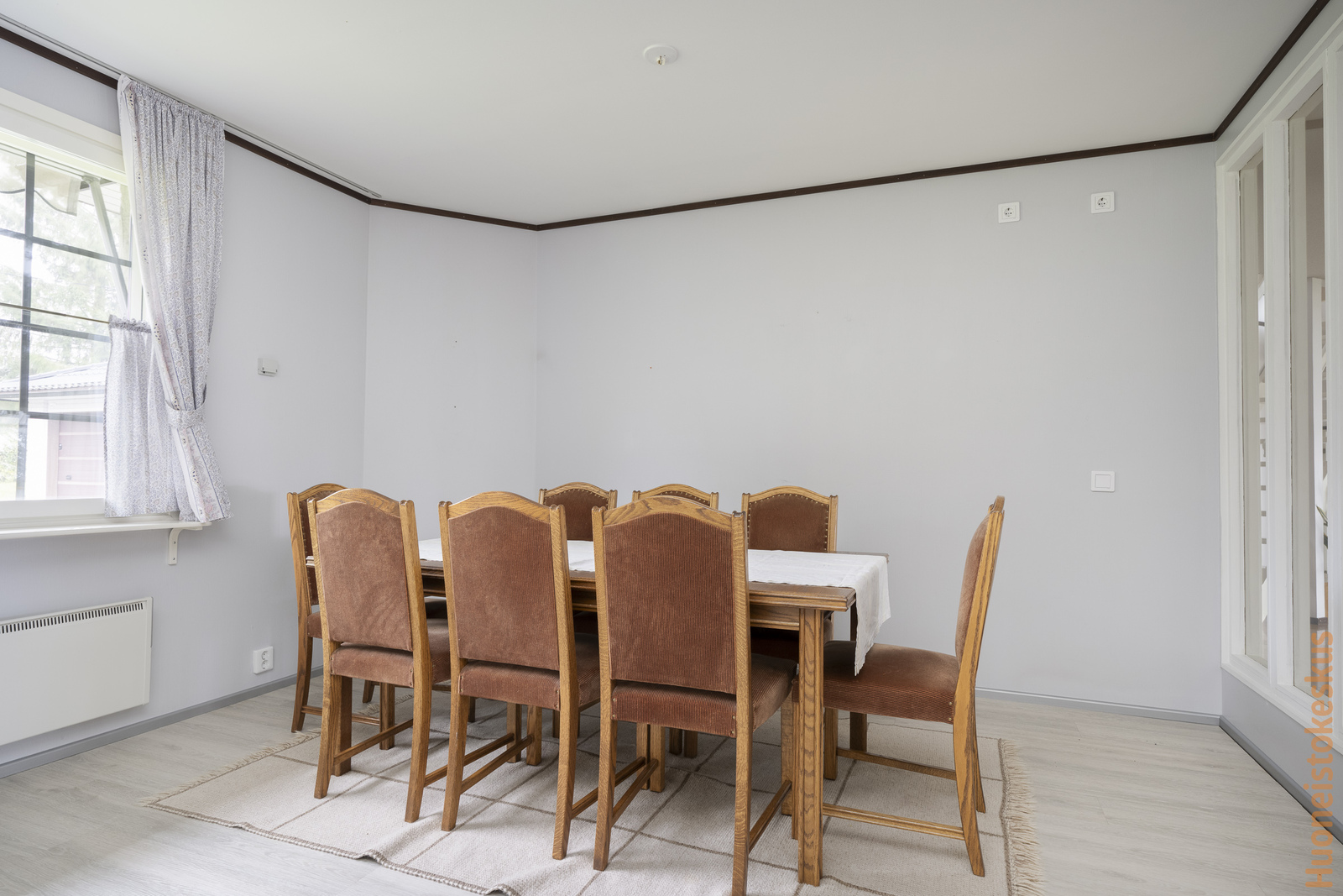 Tässä siistikuntoisessa kodissa on kolme makuuhuonetta, avarat olo- ja takkahuone, tilava keittiö ja ruokailutila, kodinhoitohuone, pesuhuone ja sauna. Lisäksi on vaatehuone ja kaksi wc-tilaa, joista toisessa on myös suihkunurkkaus. Yläkerrassa on parvitila ja kylmä käyttöullakko.