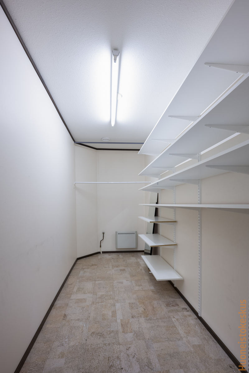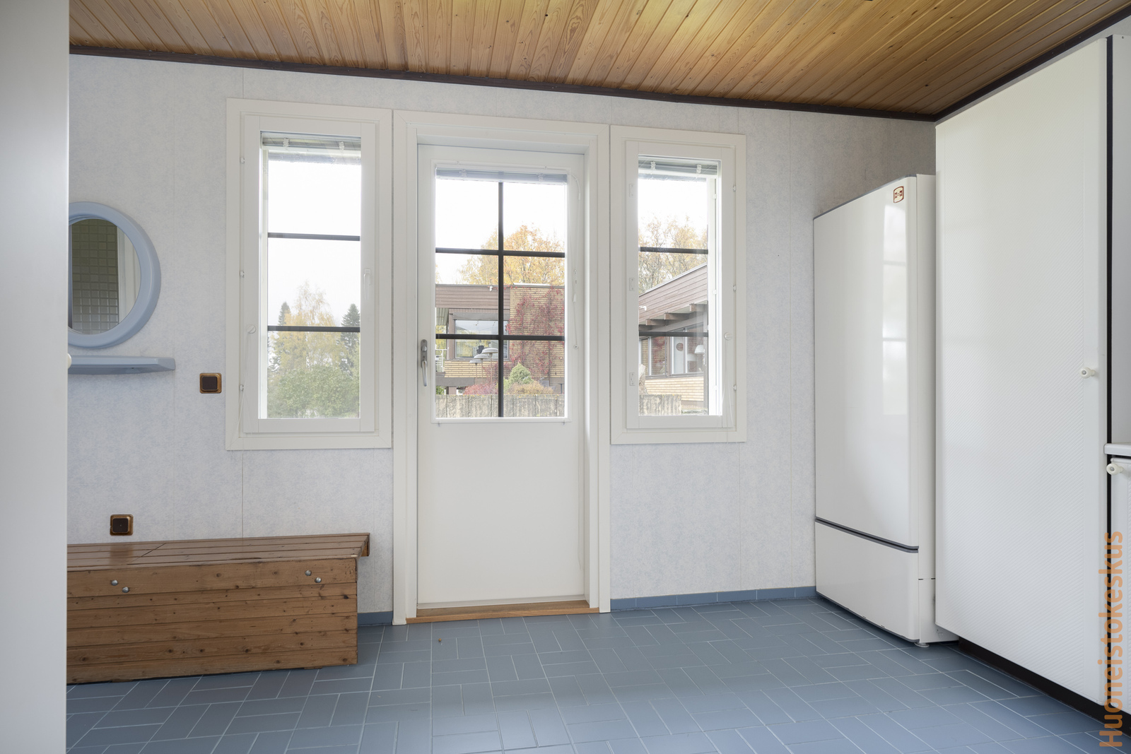 | Kodinhoitohuoneen kuvaus | Lattialämmitys, keskuspölynimuri, pöytätaso, pesukoneliitäntä, pyykkikaapit ja pesuallas, lattiat (laatta), seinät (tapetti) |