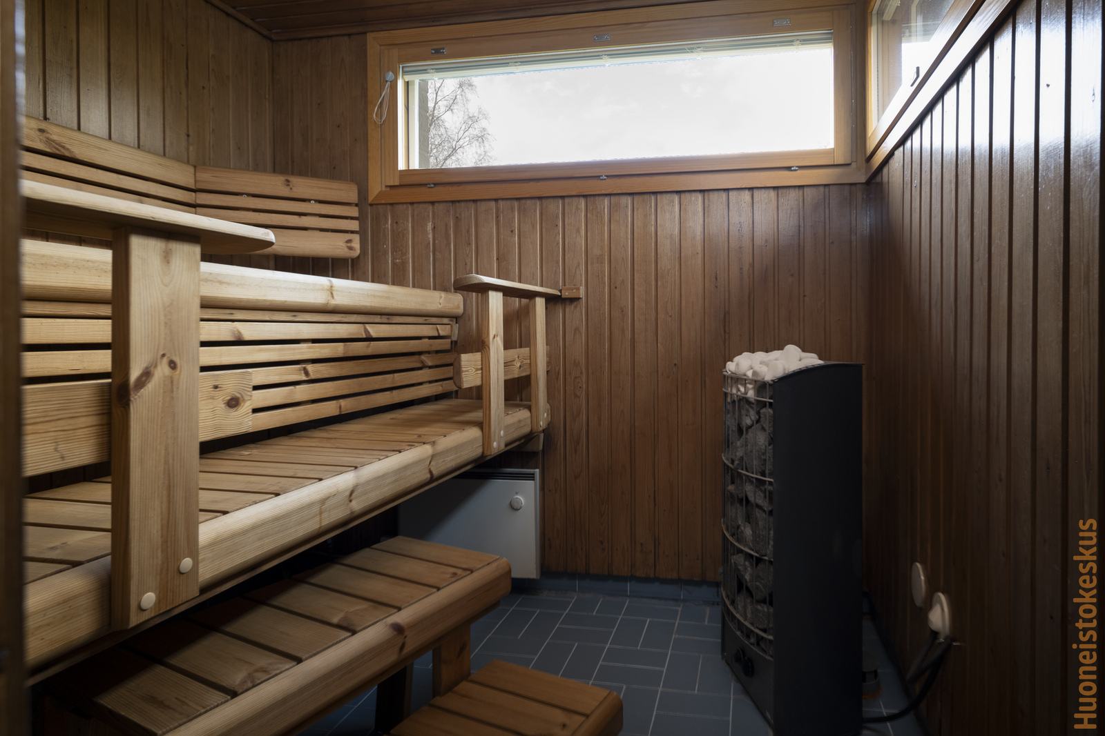 | Saunan kuvaus | Seinät (paneeli), lattiat (laatta), Sähkökiuas, Kiuas uusittu 2009, lauteet päivitetty ja käsitelty saunasuojalla. |