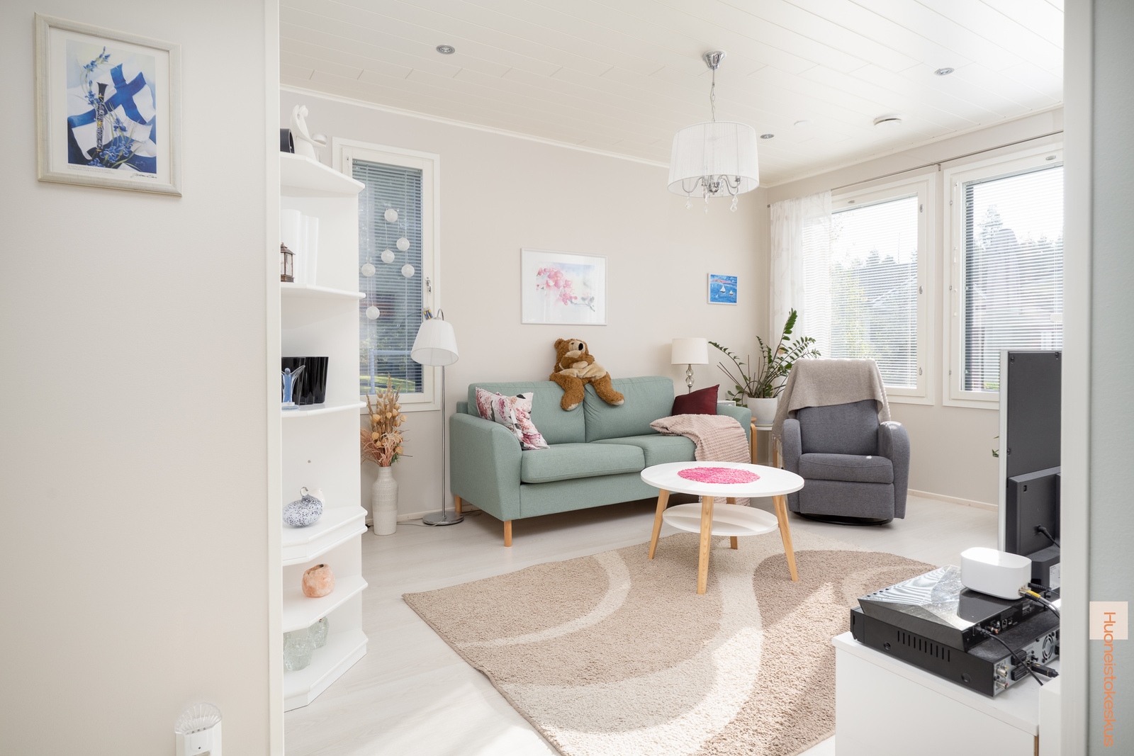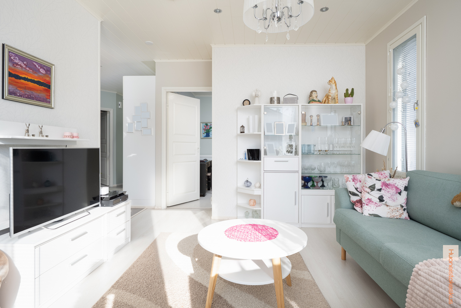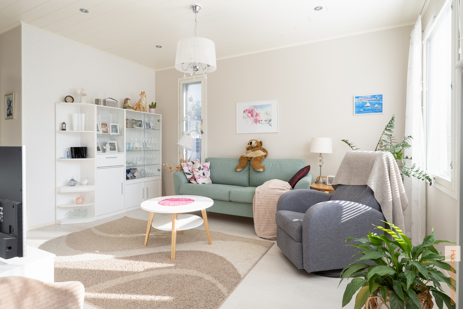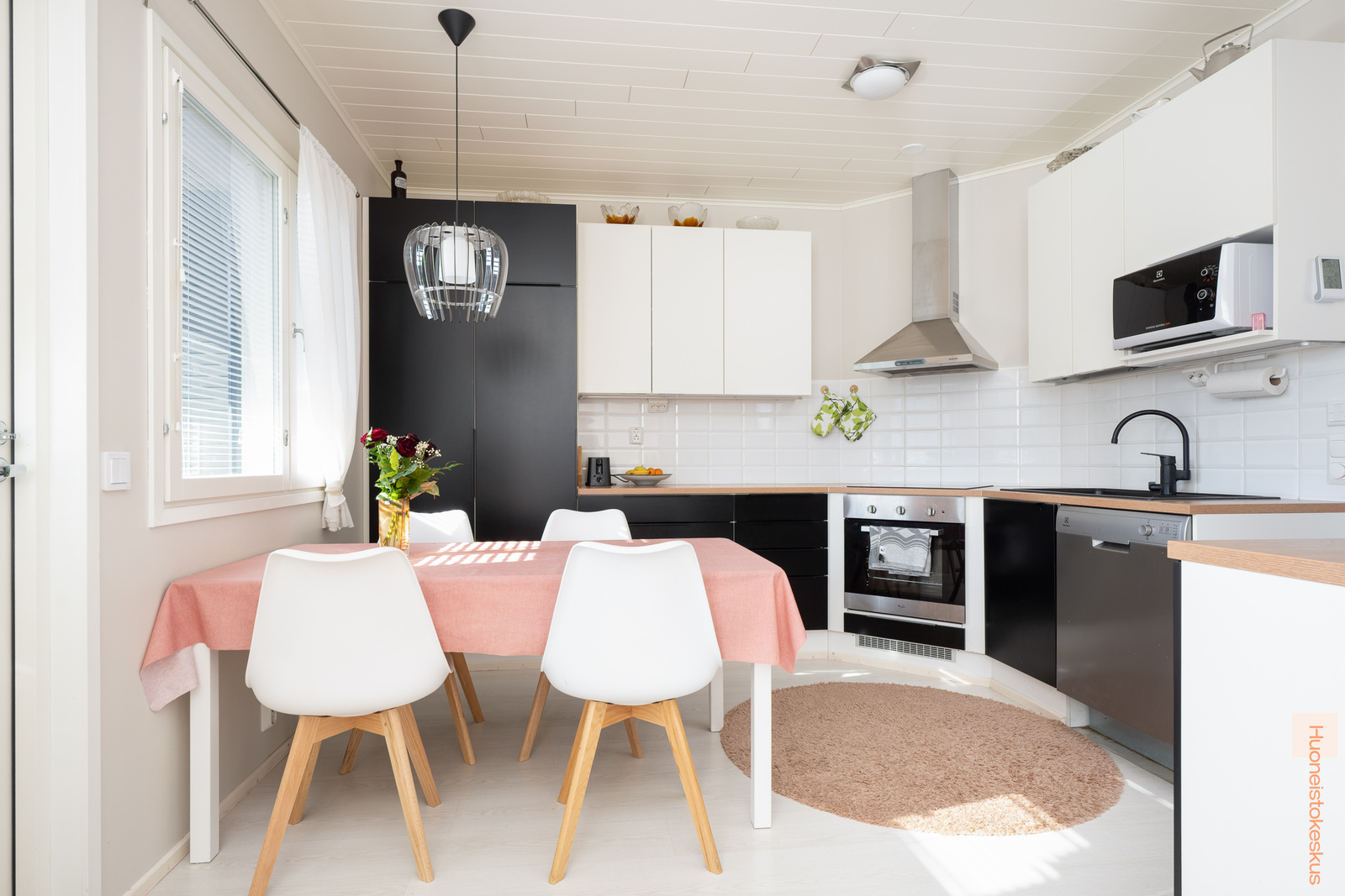 Tässä viihtyisässä kodissa on kaksi makuuhuonetta kiinteillä kaapistoilla. Väljästä eteisestä löytyy myös hyvin säilytystilaa. Tyylikäs tumma keittiö, jossa tasot, allas, valaisimet ja osa kodinkoneista uusittu muutama vuosi sitten. Erillinen wc sekä toinen wc tilavan kylpyhuoneen yhteydessä. Kodinhoitohuoneesta ja keittiöstä kulku takaterassille, johon asennettu laadukkaat Lumonin lasitukset.