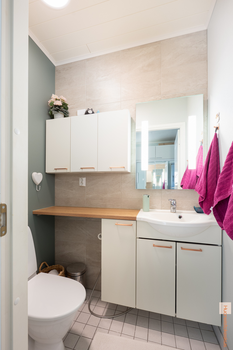 Lukumäärä: 1, Lattialämmitys ja bidee-suihku, seinät (Maali), lattiat (Laatta) |