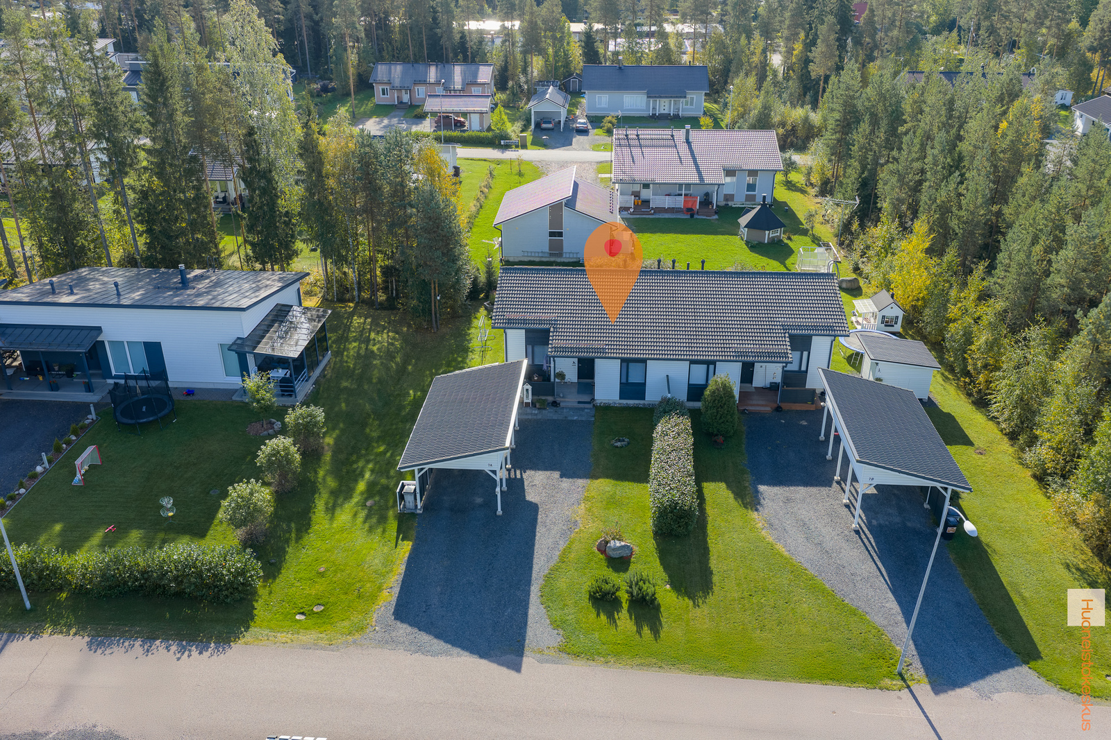 Tontti on jaettu hallinnanjakosopimuksella asuntojen kesken. Omat etupihat kulkualueineen, erilliset autokatokset ja istutukset antavat rauhaa ja yksityisyyttä. Maalämpö vesikiertoisella lattialämmityksellä takaa edulliset asumiskustannukset. Elisan valokuitu käytettävissä.