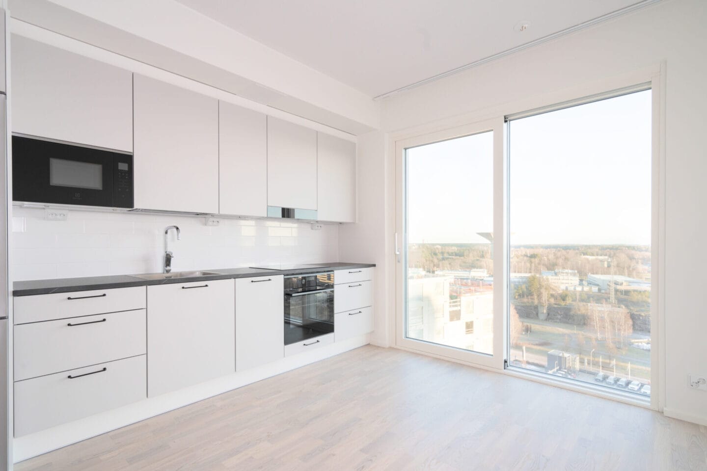 Hissitalon 16. kerroksen moderni, muuttovalmis koti.