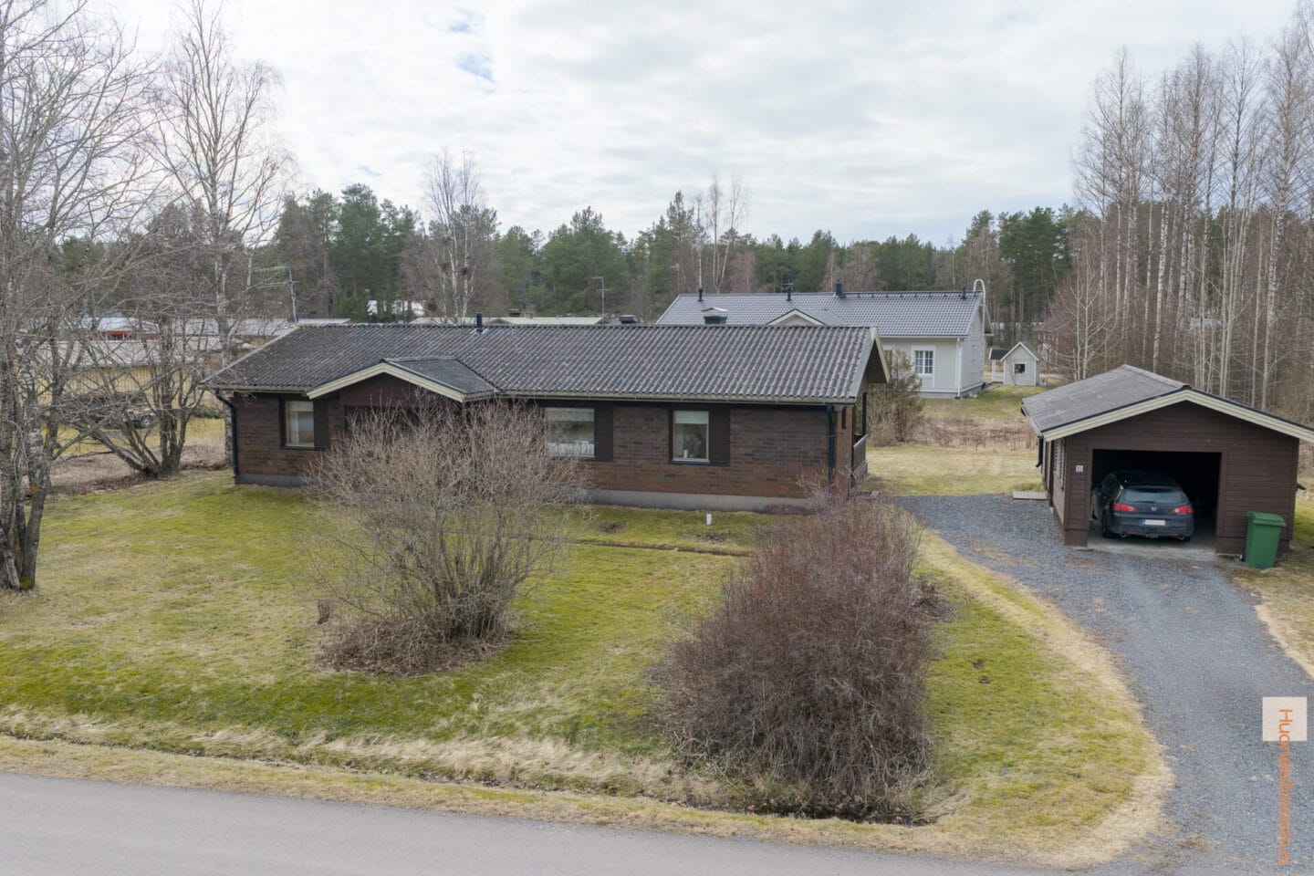 Omakotitalo on valmistunut v.1985 ja se on pääosin alkuperäisessä, mutta siistissä kunnossa. Remontoimalla tästä saa oman mieleisen kodin. Huonejärjestyksenä on kolme makuuhuonetta, olohuone, keittiö, apukeittiö, pesuhuone, sauna ja erillinen wc-tila, missä arjen luksuksena on kylpyamme. Apukeittiöstä on uloskäynti talon päätyyn katetulle verannalle. Talon yhteydessä on myös tekninen tila. Lämmitysmuotona on vesikeskuslämmitys kaukolämmöllä. Olohuoneessa on lisäksi varaava takka.