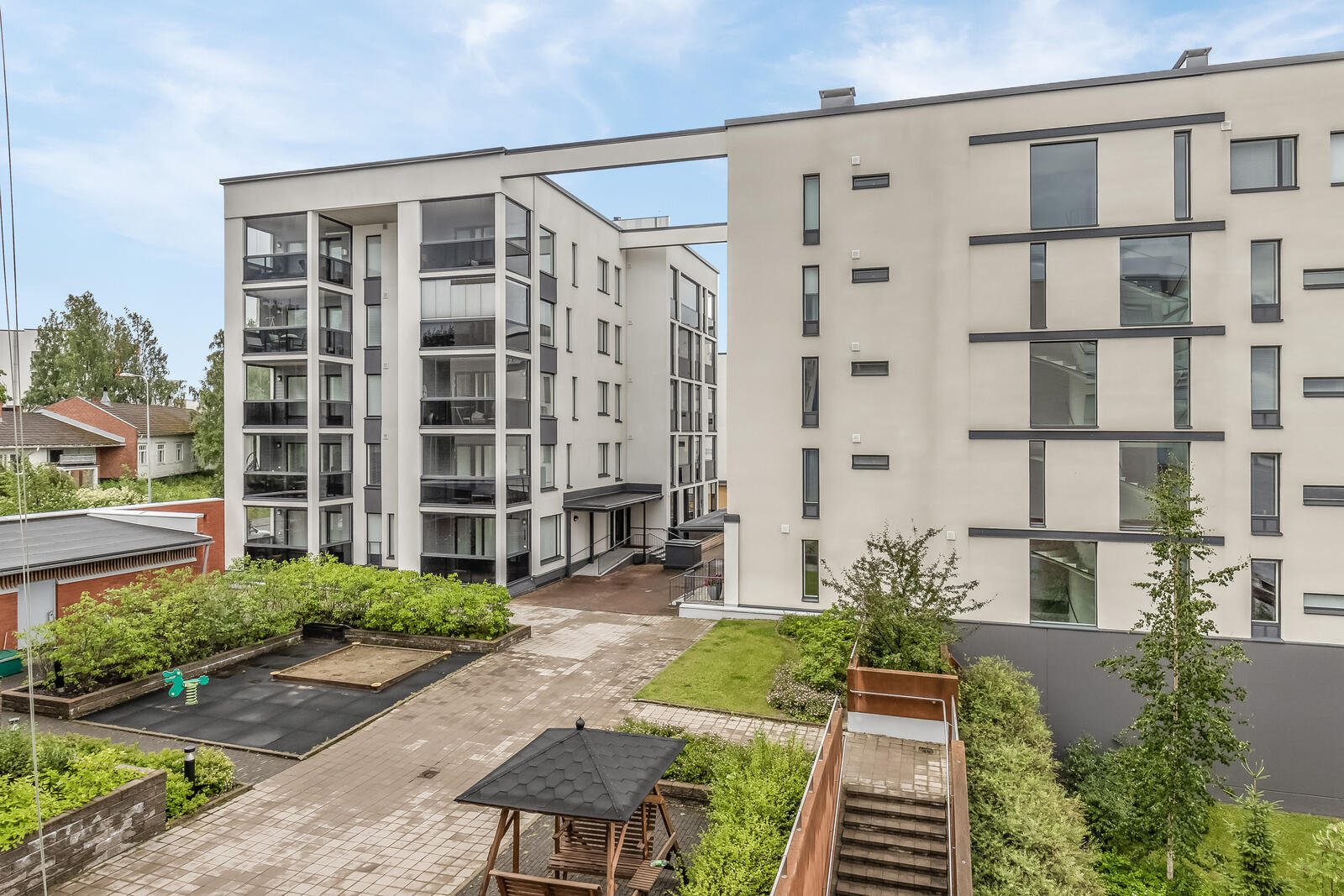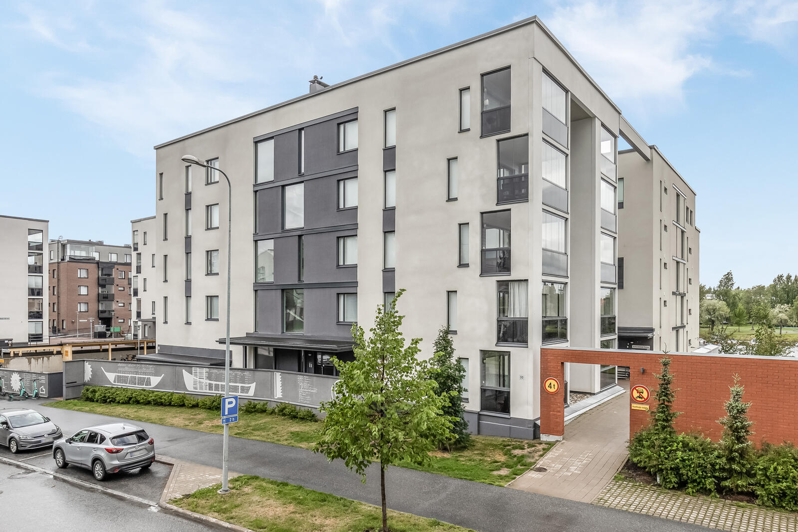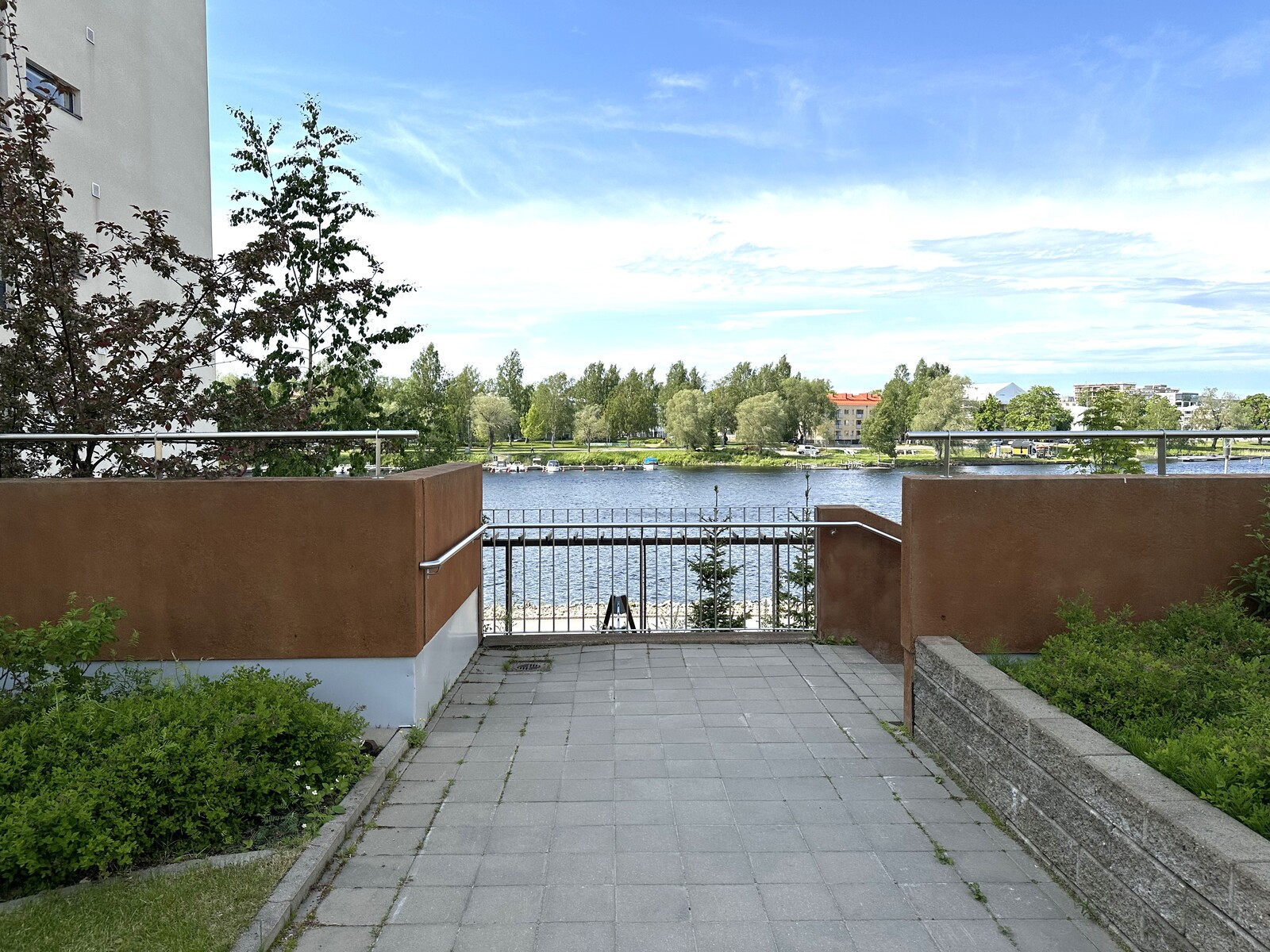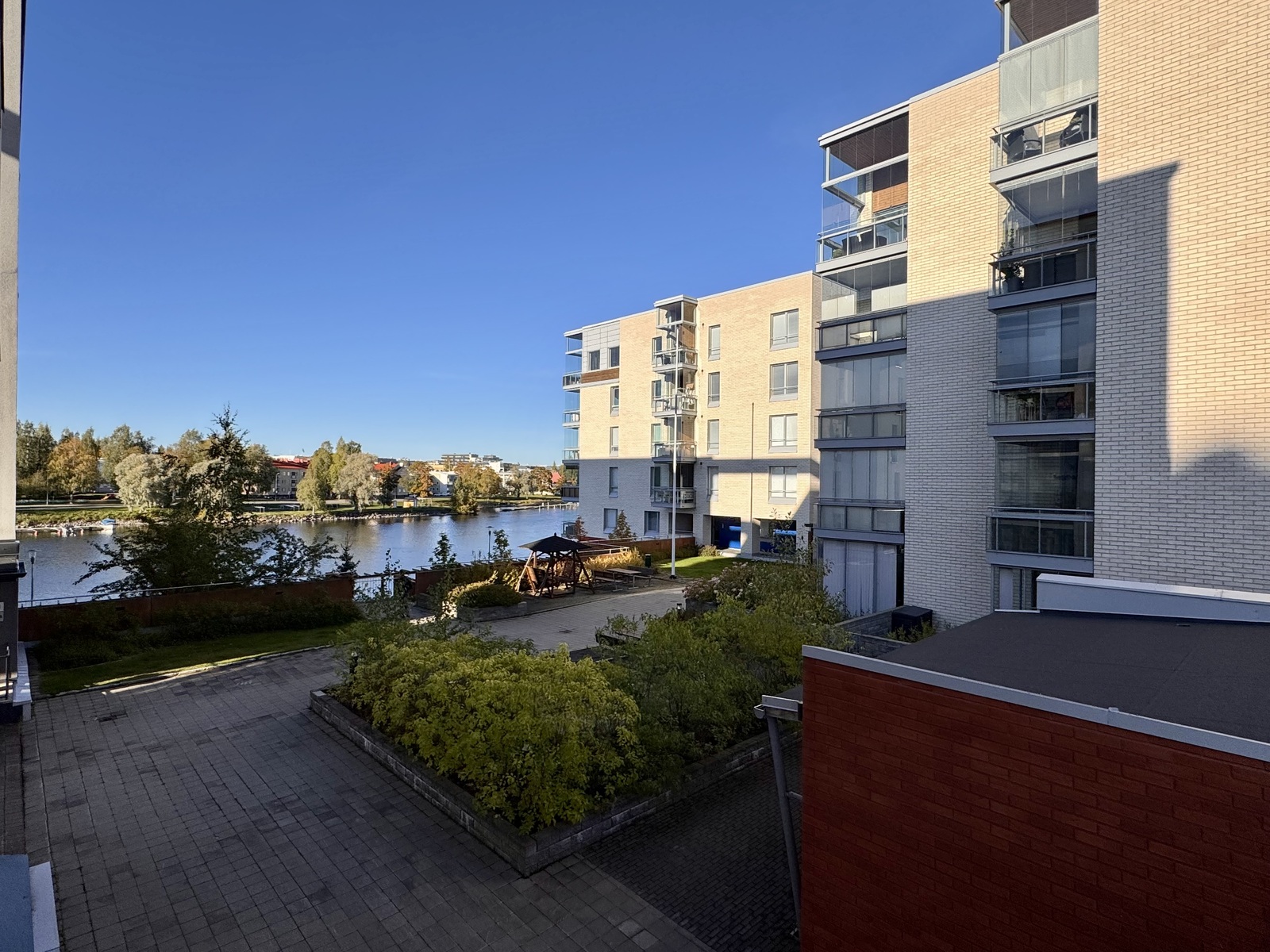 Hissitalon 2. kerroksen kulmahuoneisto. Ikkunat kahteen ilmansuuntaan, kohti Pentilänkatua ja vehreää pihaa. Lasitetulta parvekkeelta näkymät joelle! Iso makuuhuone, jonka yhteydessä vaatehuone. Oma sauna, huoneiston käytössä myös erillinen häkkivarasto.