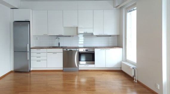 | Keittiön kuvaus | Liesi (Keraaminen liesi), työtasot (laminaatti), seinät (maali), lattiat (parketti), jääkaappipakastin, liesituuletin, astianpesukone ja kiinteät valaisimet |