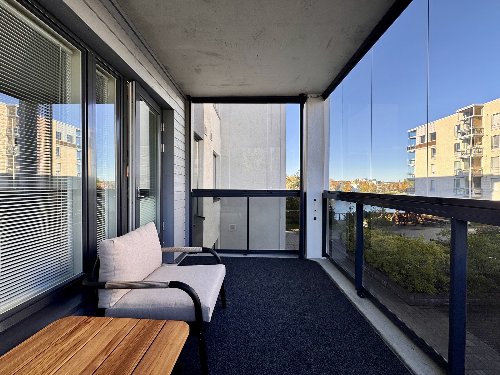 | Parvekkeen kuvaus | Lasitettu ja ulostyönnetty |